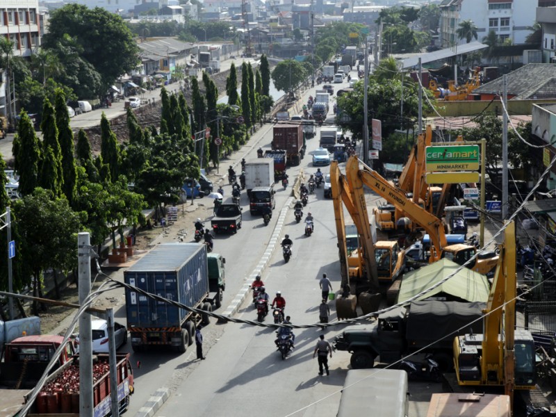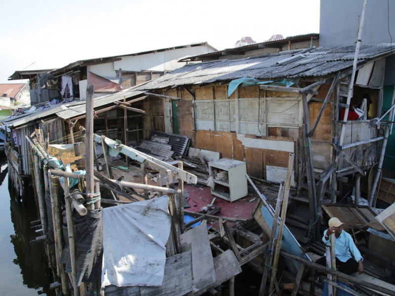 Warga Pasar Ikan merespon Surat Peringatan (SP) 2 yang dilayangkan Pemerintah Kota Jakarta Utara Rabu kemarin dengan membongkar sendiri bangunan milik mereka di RW 04 Kelurahan Penjaringan, Kecamatan Penjaringan, Jakarta Utara Kamis (7/4). Sejumlah alat Berat telah ditempatkan Pemprov DKI untuk persia pan penataan pekan depan.(Foto: Yopie/beritajakarta.com)