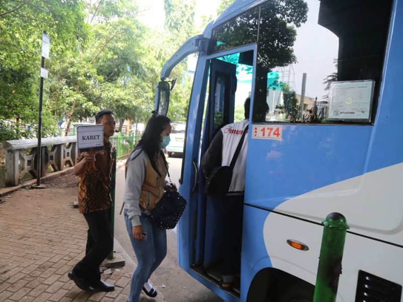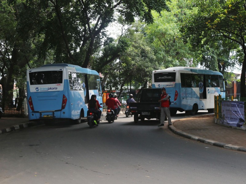 Pihak Dinas Perhubungan dan Transportasi DKI Jakarta melakukan penutupan perlintasan sebidang di Jalan KH Abdullah Syafe`i Tebet, Jakarta Selatan. Penutupan ini dilakukan untuk meminimalisir resiko terjadinya kecelakaan antara kereta dengan kendaraan lain maupun pejalan kaki. Uji coba penutupan ini berlangsung selama satu pekan dan dibarengi dengan kebijakan rekayasa lalu lintas serta menyediakan bus pengangkut gratis. Bus feeder Transjakarta ini melayani pengguna jasa kereta yang akan melanjutkan perjalanan menuju Kampung Melayu maupun Tanah Abang. (Foto: Reza/Beritajakarta.com)