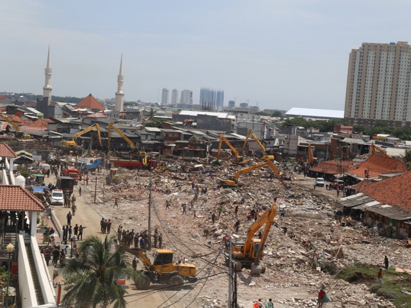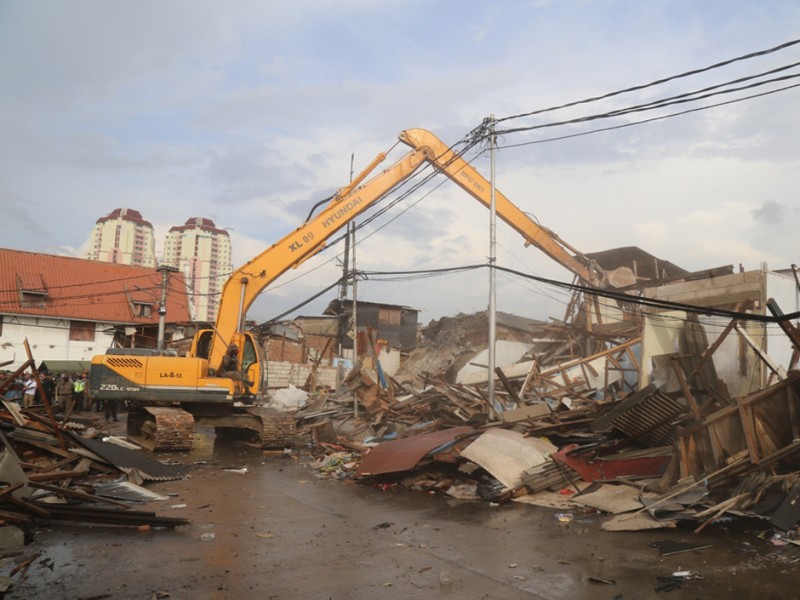 Pemerintah Provinsi DKI Jakarta bersama Polisi dan TNI melakukan penertiban kawasan Pasar Ikan, Kelurahan Penjaringan, Kecamatan Penjaringan, Jakarta Utara, Senin (11/04). Penertiban ini adalah upaya Pemerintah Provinsi DKI Jakarta untuk merevitalisasi kawasan wisata Bahari.(Foto: Reza/Beritajakarta.com)