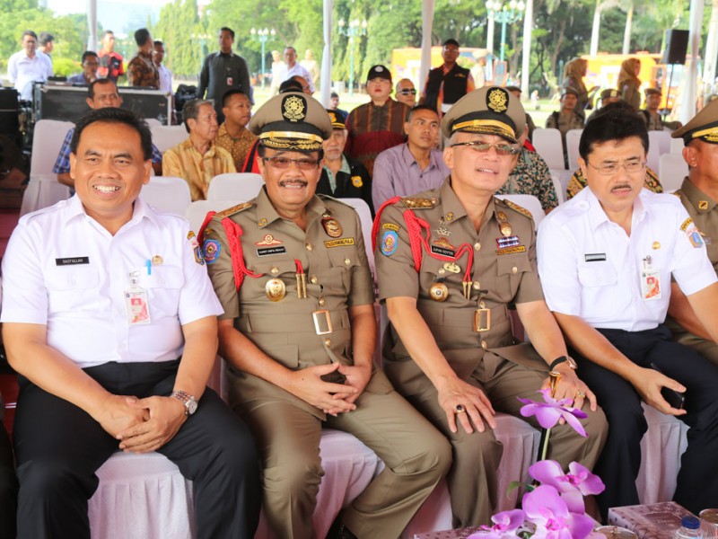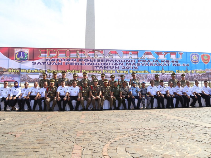 Wakil Gubernur DKI Jakarta Djarot Saiful Hidayat menghadiri peringatan ulang tahun Satuan Polisi Pamong Praja(Satpol PP) ke-66 dan Perlindungan Masyarakat ( Linmas ) ke-52 di Kawasan Monas, Gambir, Jakarta Pusat, Rabu ( 13 /4/2016). Dalam peringatan ini Djarot bertindak sebagai inspektur upacara.(Foto: Reza/Beritajakarta.com)