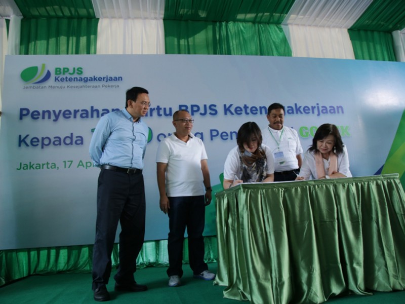 Basuki Hadiri Penyerahan Jaminan Sosial Ketenagakerjaan untuk Go-Jek