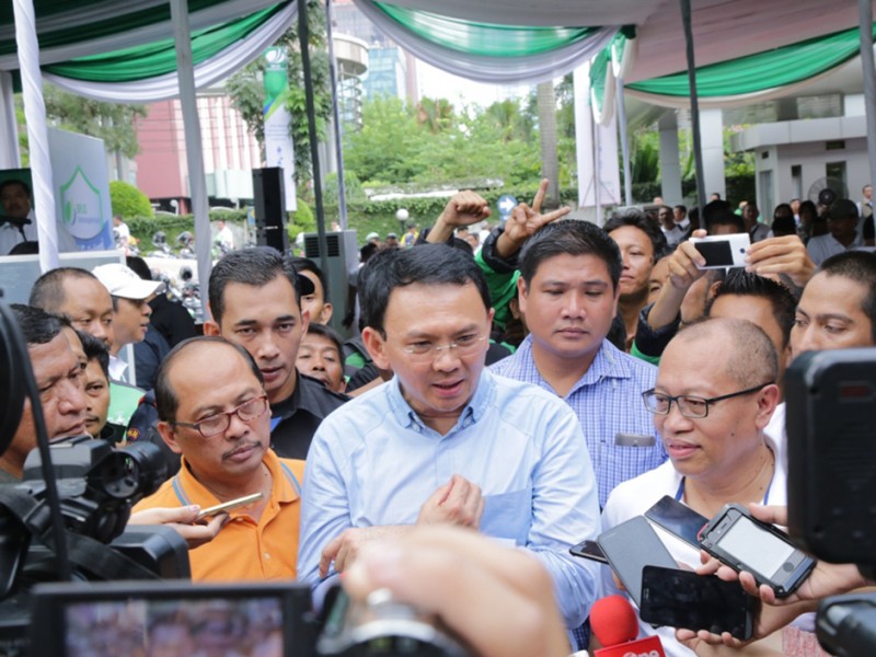 Gubernur DKI Jakarta, Basuki T Purnama menghadiri penandatanganan dan penyerahan BPJS Ketenagakerjaan untuk 1200 pengendara Go-Jek, di Kantor Pusat BPJS Ketenagakerjaan, Gatot Subroto, Jakarta Selatan, Minggu (17/4). Turut hadir dalam acara ini Kepala Dinas Tenaga Kerja dan Transmigrasi DKI Jakarta, Priyono dan Walikota Jakarta Selatan, Tri Kurniadi.(Foto: Yopie/Beritajakarta.com)