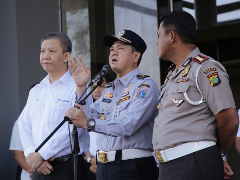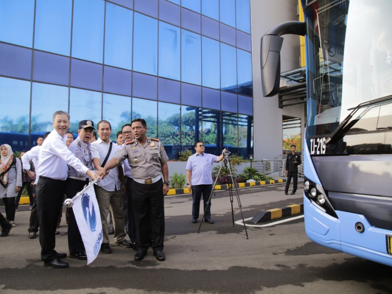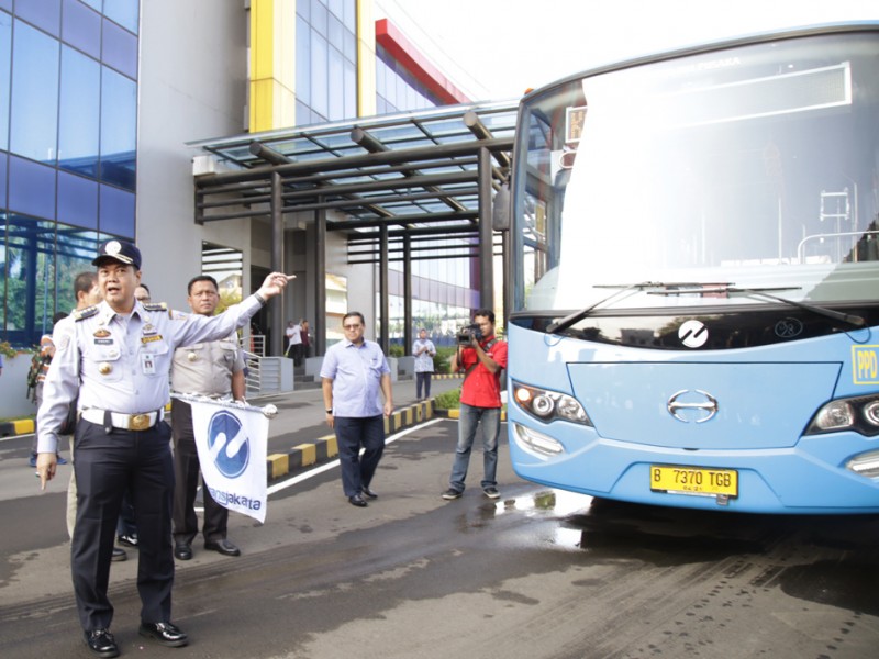 Dinas Perhubungan dan Transportasi Provinsi DKI Jakarta meluncurkan 651unit bus Transjakarta di kantor PT Transportasi Jakarta, Jl Jenderal Soetoyo, Cawang, Jakarta Timur, Senin (18/4). Ratusan Bus Transjakarta ini terbagi dalam 600 bus single dan 51 bus gandeng. Peluncuran unit bus Transjakarta tambahan ini terkait perpanjangan pelaksanaan uji coba penghapusan 3 in 1 hingga 14 Mei 2016 mendatang. (Foto: Yopie/Beritajakarta.com)