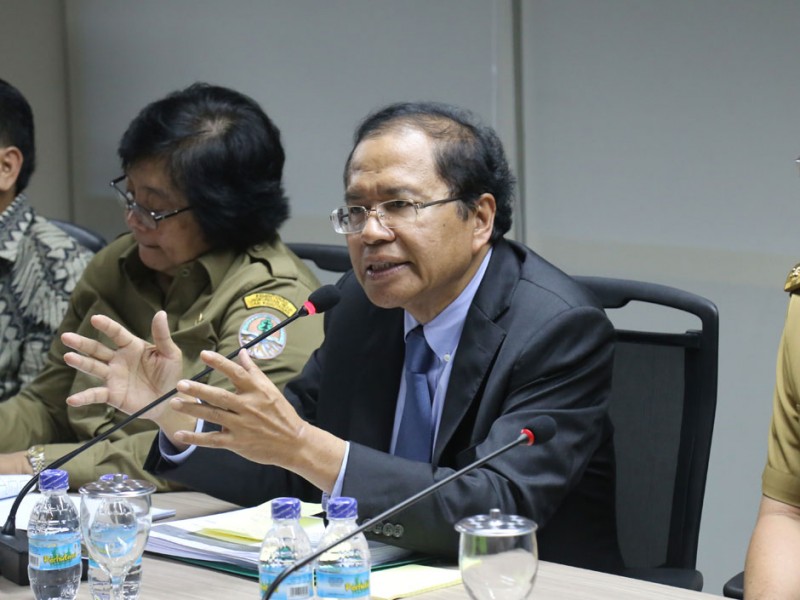 Gubernur DKI Jakarta, Basuki Tjahaja Purnama, Menteri Koordinator Kemaritiman, Rizal Ramli, Menteri Lingkungan Hidup dan Kehutanan Siti Nurbaya dan Direktur Jenderal Pengelolaan Ruang Laut Brahmantya Satyamurti Poerwadi melakukan jumpa Pers setelah melakukan rapat koordinasi tentang proyek reklamasi di Gedung BPPT, Jalan MH Thamrin, Jakarta Pusat, Senin (18/04). Hasil dari rapat itu Menko Kemaritiman memutuskan untuk menghentikan sementara (moratorium) proyek reklamasi.(Foto: Reza/beritajakarta.com)