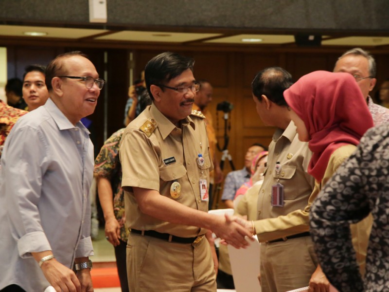 Wakil Gubernur DKI Jakarta, Djarot Saiful Hidayat meluncurkan aplikasi Penanggulangan HIV-AIDS di Balai Kota Jakarta, Selasa (19/4). Apkikasi yang dihubungkan dengan Smart City ini bernama `Jakarta AIDS`. Dalam peremian ini hadir Kepala Biro Kesejahteraan Sosial Provinsi DKI Jakarta, Sri Hari Jogja dan Kepala Bidang Pengendalian Masalah Kesehatan, Dinas Kesehatan DKI Jakarta, Widyastuti. (Foto: Yopie/Beritajakarta.com)