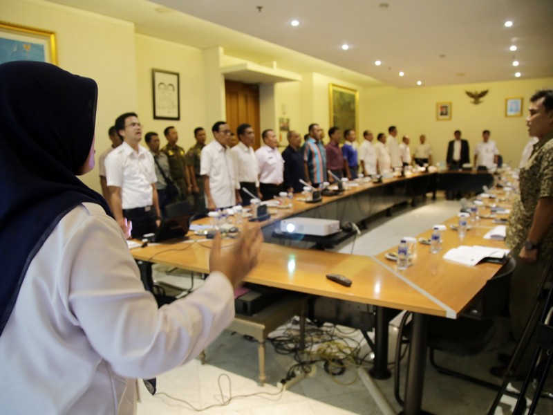 Pemerintah Provinsi (Pemprov) DKI menggelar Rapat Koordinasi Kesiapan Komunitas Intelijen Daerah ( Kominda ) dalam mengantisipasi Peringatan Hari Buruh Sedunia (May Day) Tahun 2016 di Balaikota DKI Jakarta Rabu (20/4/2016). Dalam rakor ini Pemprov DKI beserta Komando Daerah Militer (Kodam) Jaya dan Kepolisian Daerah (Polda) Metro Jaya telah mempersiapkan keamanan peringatan Hari Buruh Sedunia atau May Day, 1 Mei mendatang.(Foto: Yopie/Beritajakarta.com)