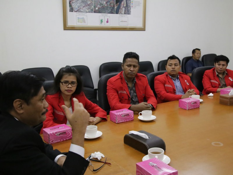 Presidium Gerakan Mahasiswa Nasional Indonesia (GmnI) menyampaikan program kerja dan permohonan masukan serta arahan demi perkembangan GmnI, kepada Wakil Gubernur DKI Jakarta, Djarot Saiful Hidayat di Balai Kota Jakarta, Kamis (21/4).(Foto: Yopie/beritajakarta.com)
