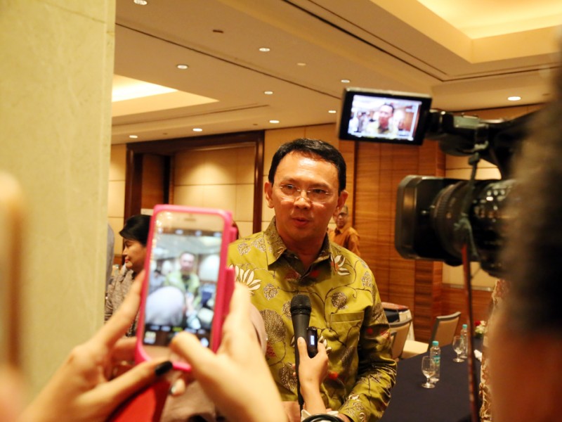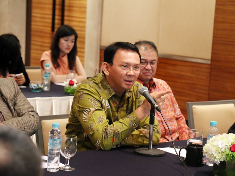 Gubernur DKI Jakarta, Basuki Tjahaja Purnama menghadiri acara ramah tamah dan presentasi Platinum Triangle terkait pedestrian di Jakarta oleh Tim Urban Guerilla Arsitek Kota di salah satu hotel di Jakarta Pusat, Kamis (21/04).(Foto: Reza/Beritajakarta.com)