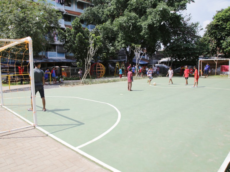 Warga Rumah Susun Tanah Tinggi, manfaatkan libur akhir pekan dengan memanfaatkan berbagai fasilitas Ruang Publik Terpadu Ramah Anak ( RPTRA) Sabtu (33/4). RPTRA Rumah Susun Tanah Tinggi (Rustanti) telah diremikan Gubernur DKI Jakarta Basuki Tjahaja Purnama Kamis 21 April kemarin. (Foto: Yopie/beritajakarta.com)
