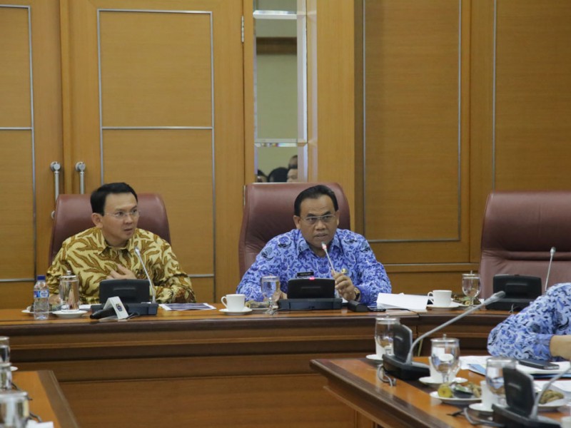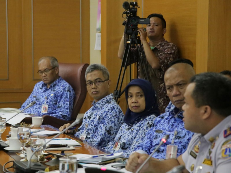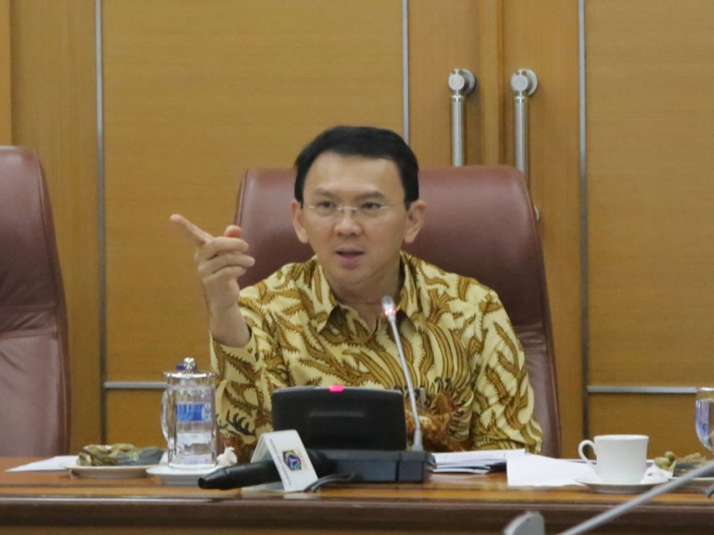 Gubernur DKI Jakarta, Basuki Tjahaja Purnama memimpin rapat membahas analisa hasil uji coba penghapusan 3 in 1 bersama jajaran Satuan Kerja Perangkat Daerah (SKPD) di Balai Kota DKI Jakarta, Senin (25/4).(Foto: Yopie/beritajakarta.com)