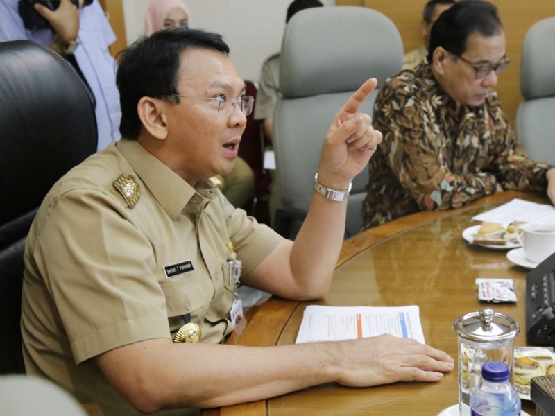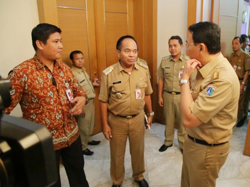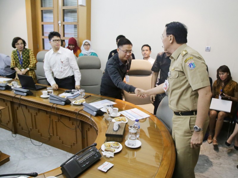 Direktur Utama PT. Jakarta Propertindo, Satya Heragandhi, menyampaikan laporan progres Proyek LRT Kepada Gubernur DKI Jakarta, Basuki Tjahaja Purnama di Balai Kota Jakarta, Selasa (26/4). (Foto: Yopie/beritajakarta.com)