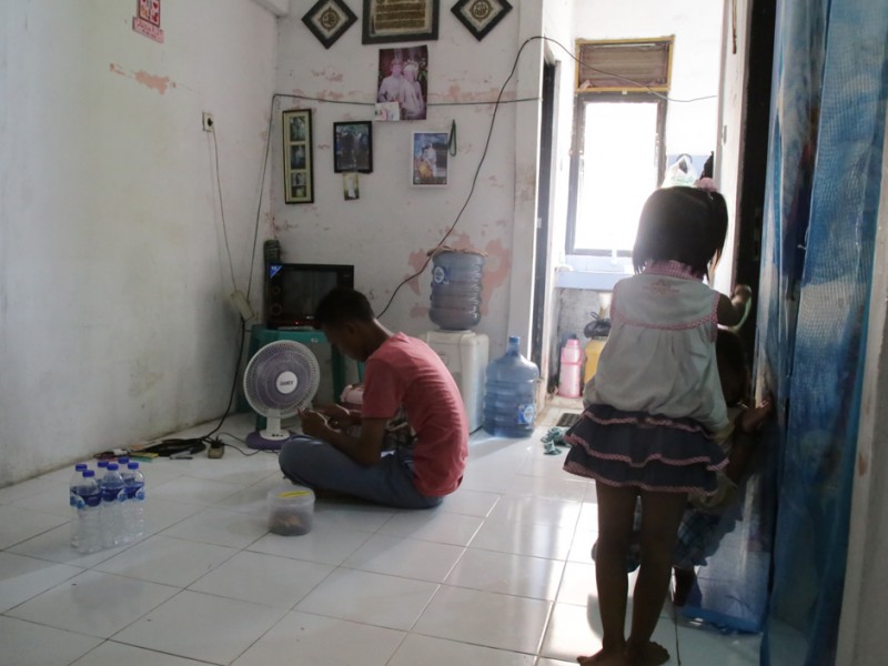 Warga Relokasi Pasar Ikan, menikmati fasilitas Rumah Susun (Rusun) Kapuk Muara, Penjaringan, Jakarta Utara, Rabu (27/04). Fasilitas yang mereka peroleh membuat kehidupan mereka jauh lebih baik ketimbang sebelumya saat menempati pemukiman kumuh di Kawasan Pasar Ikan Penjaringan, Jakarta Utara. (Foto: Yopie/beritajakarta.com)