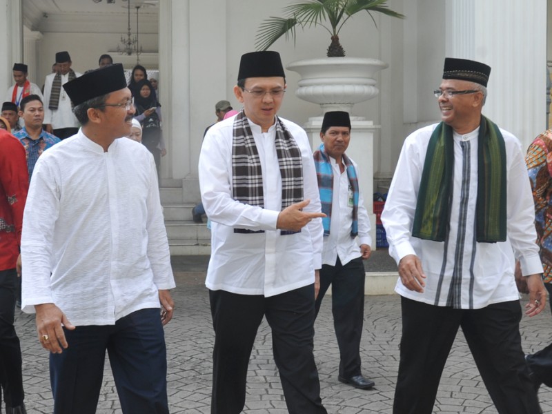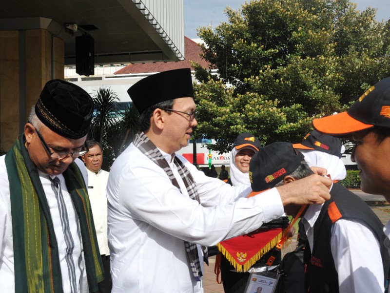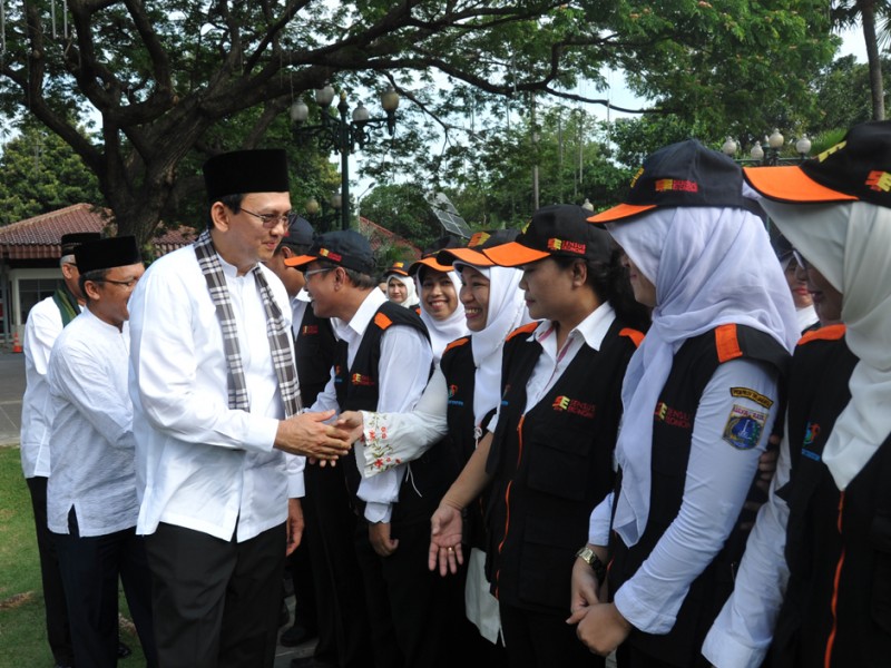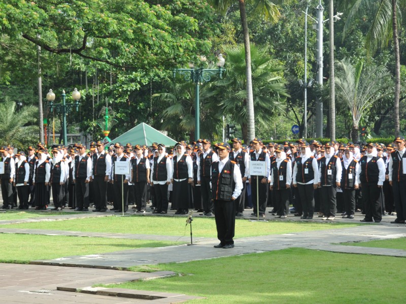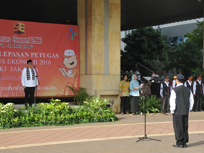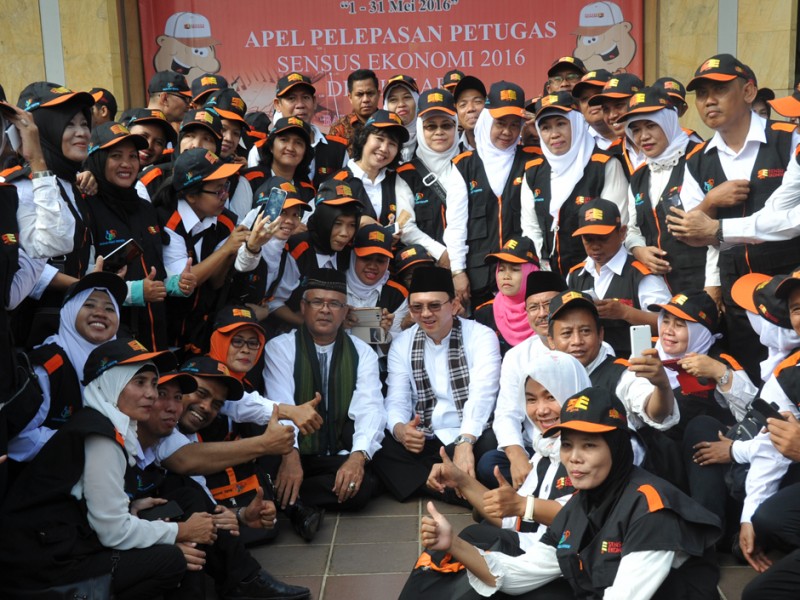 Gubernur DKI Jakarta, Basuki Tjahaja Purnama melepas 22.035 petugas Sensus Ekonomi 2016 di halaman Balai Kota DKI Jakarta, Kamis (28/4/2016). Sensus Ekonomi dilakukan untuk mendata seluruh kegiatan ekonomi, kecuali sektor pertanian. Kegiatan Sensus Ekonomi 2016 ini akan berlangsung selama satu bulan yakni mulai 1 hingga 31 Mei mendatang. (Foto: Yopie/Beritajakarta.com | Hasan/Humas)