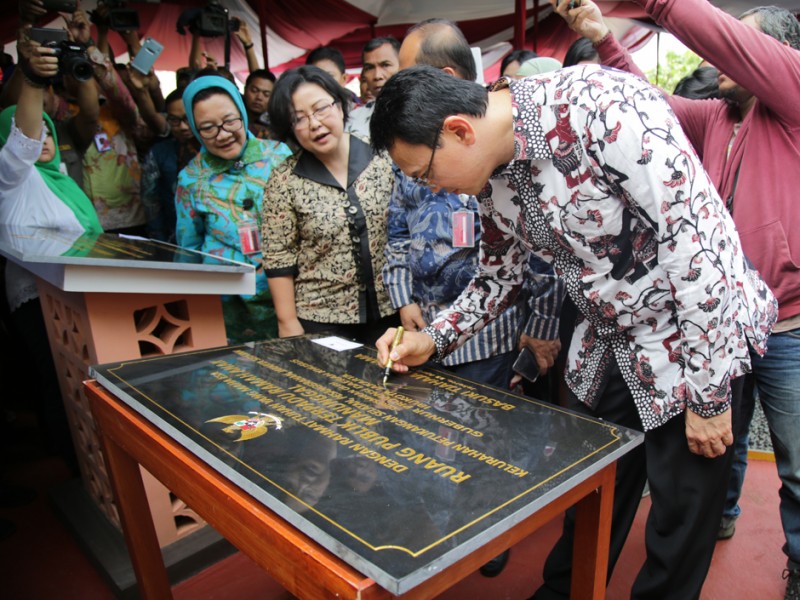 Gubernur DKI Jakarta, Basuki Tjahaja Purnama, meresmikan dua Ruang Publik Terpadu Ramah Anak (RPTRA) di Jakarta Selatan Jumat (29/04). Kedua RPTRA yang diresmikan ini yakni RPTRA Rasamala diJalan Rasamala III RT 003/13 Kelurahan Menteng Dalam, Kecamatan. Tebet, dan RPTRA Manunggal di Kelurahan Petukangan Selatan Pesanggrahan(Foto: Yopie/beritajakarta.com)