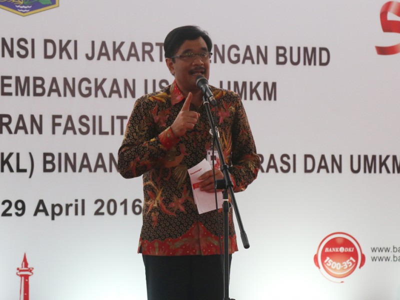 Wakil Gubernur DKI Jakarta, Djarot Saiful Hidayat menyaksikan penandatanganan perjanjian kredit secara massal untuk pedagang binaan Dinas Koperasi, UMKM dan Perdagangan Provinsi DKI Jakarta serta pedagang di Rusun Jatinegara dan Rusun Pulo Gebang Tahap IV Tahun 2016 di Halaman Lokbin Kampung Makassar, Jakarta Timur, Jumat (29/04). (Foto: Reza/beritajakarta.com)