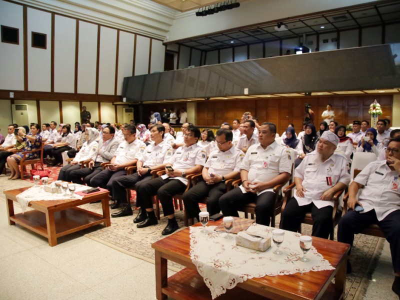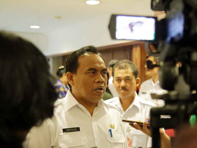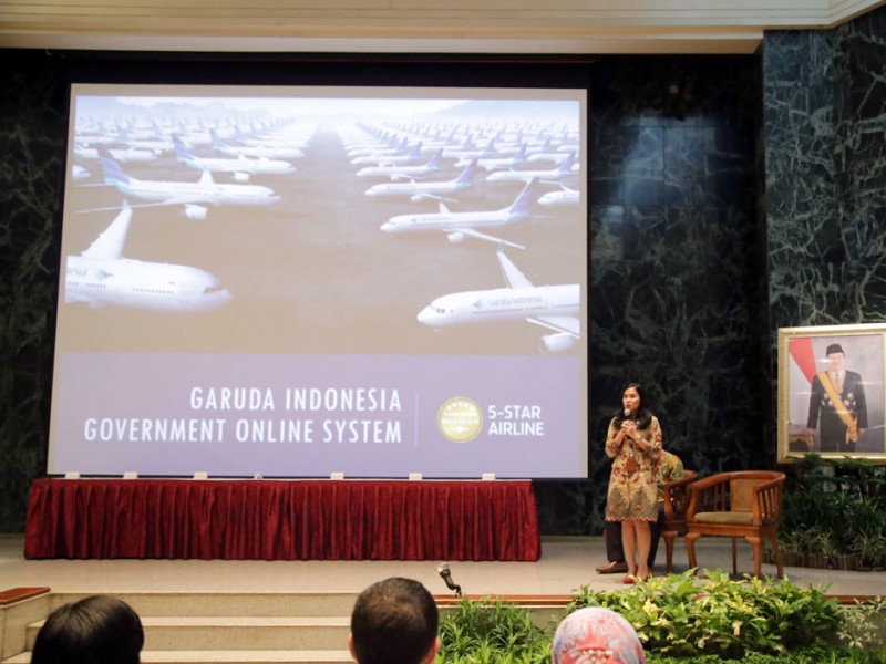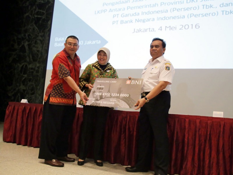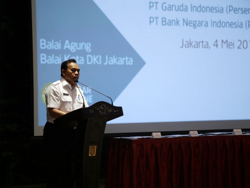 Sekretaris Daerah DKI Jakarta, Saefullah memberikan sambutan sekaligus menyaksikan Penandatanganan Perjanjian Kerjasama Pengadaan Barang dan Jasa Penerbangan melalui LKPP Antara Pemerintah Provinsi DKI Jakarta PT. Garuda Indonesia (Persero) Tbk dan PT. Bank BNI (Persero) Tbk, di Balai Kota Jakarta, Rabu (04/05).(Foto: Yopie/beritajakarta.com)
