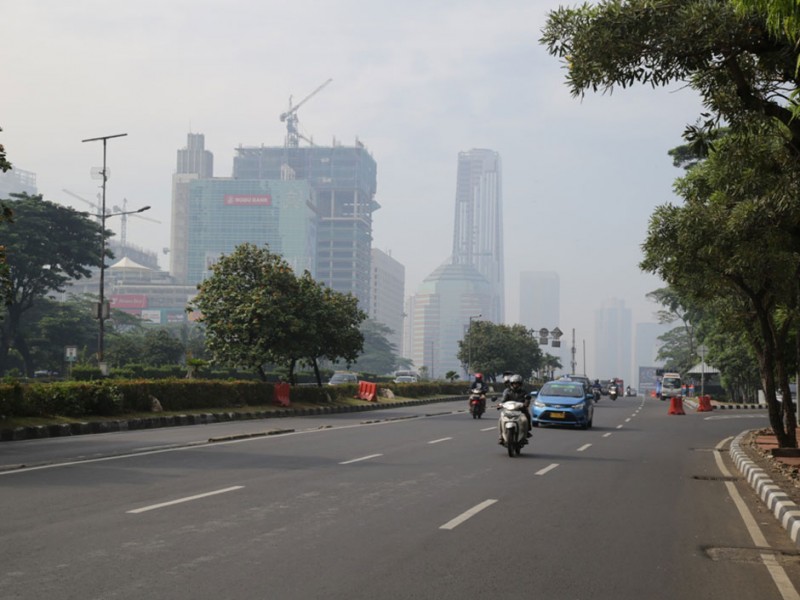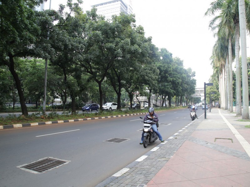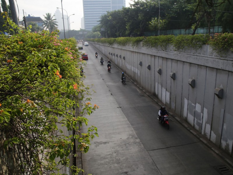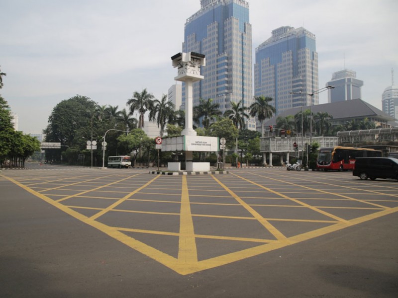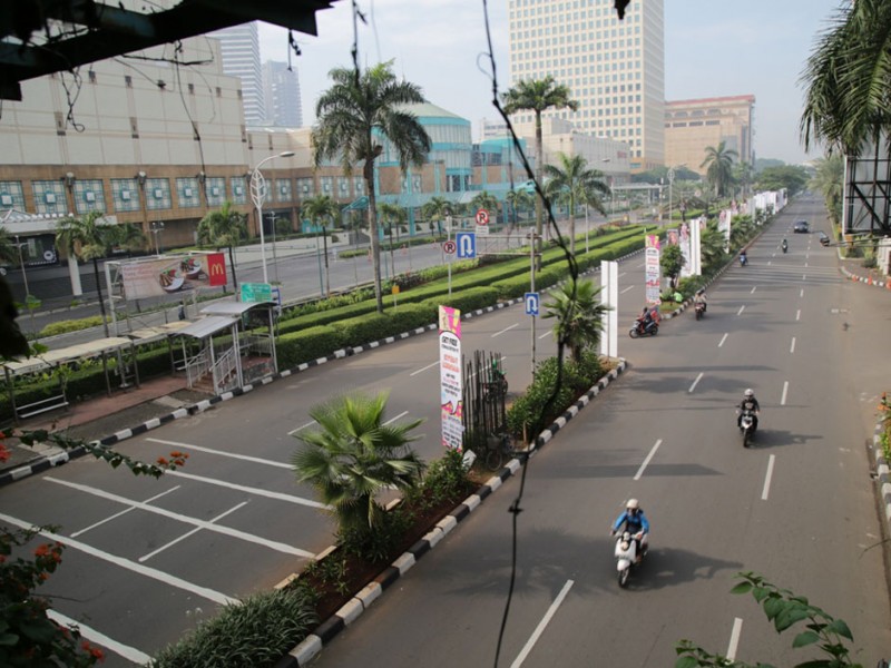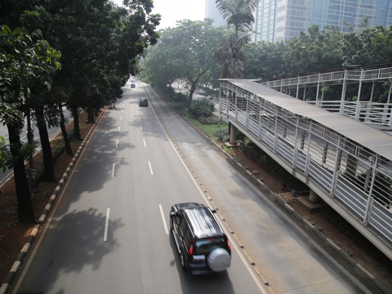 Sejumlah ruas jalan protokol ibukota lengang, Jumat (6/5). Memasuki hari kedua libur panjang sejumlah ruas jalan seperti M.H. Thamrin, Sudirman, Gatot Subroto, dan ruas tol dalam kota nampak sepi. (Foto: Yopie/Beritajakarta.com)