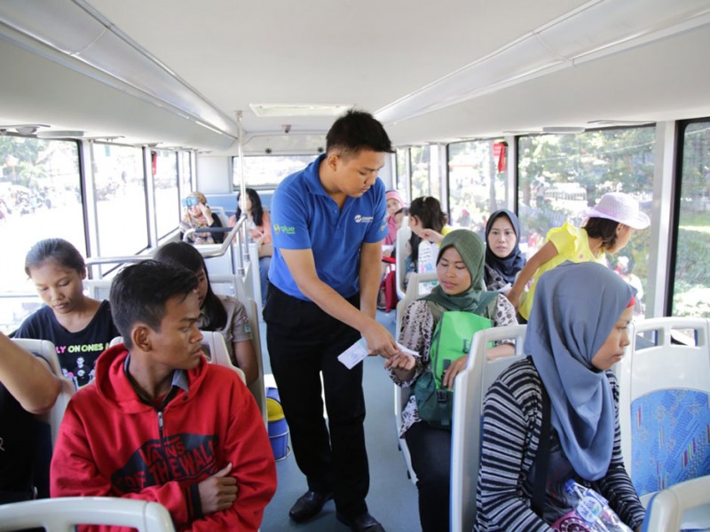 Sebanyak 6 armada Bus Jakarta City Tour melayani warga menanfaatkan libur panjang di Jakarta Jumat (6/5). Bus Jakarta City Tour akan membawa warga yang ingin menikmati libur dengan berkeliling ibukota yang melintasi ikon-ikon kota Jakarta seperti Balai Kota Jakarta, Monumen Nasional, Bundaran Hotel Indonesia, Kawasan Kota Tua, Pasar Baru serta Masjid Istiqlal dan Gereja Katedral. (Foto: Yopie/Beritajakarta.com)