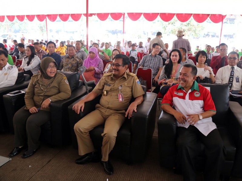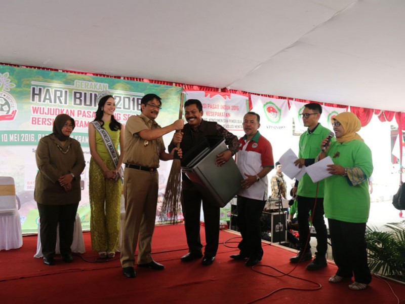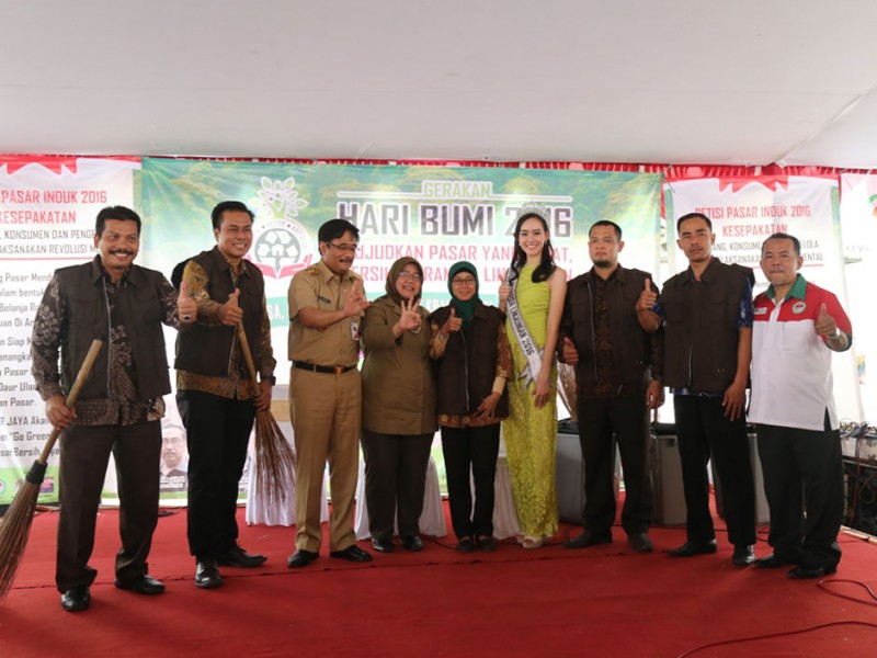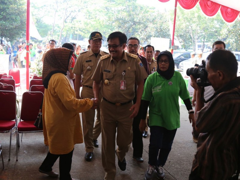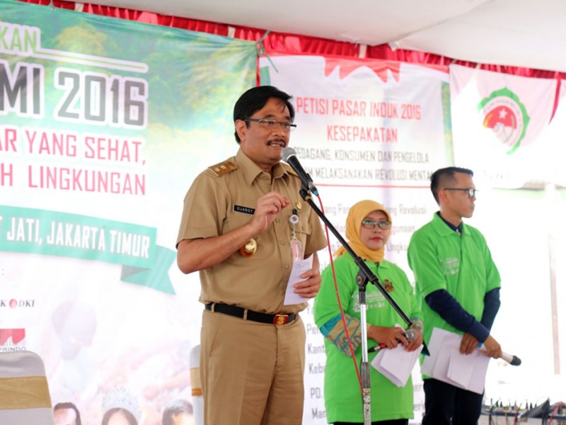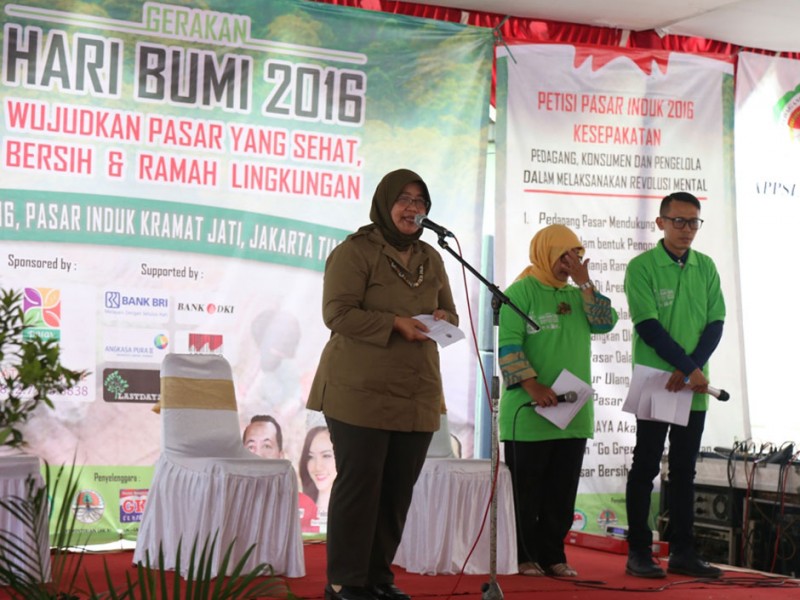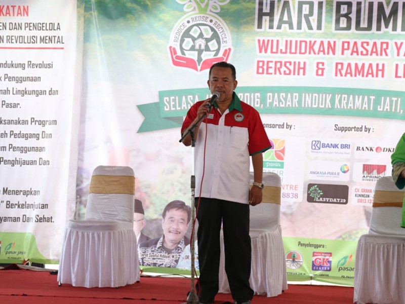 Wakil Gubernur DKI Jakarta Djarot Saiful Hidayat menghadiri perayaan hari Bumi 2016 di Pasar Induk Kramat Jati, Jakarta Timur, Selasa (10/05). Perayaan hari bumi ini dihadiri oleh Direktur Jenderal Pengelolaan Sampah, Limbah dan Bahan Beracun Berbahaya (PSLB3), Tuti Hendrawati Mintarsih dan Ketua Umum Appsindo, Hasan Basri.(Foto: Reza/Beritajakarta.com)