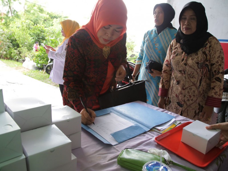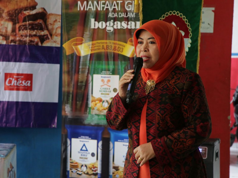 Ketua Dharma Wanita Persatuan (DWP) Provinsi DKI Jakarta, Rusmiati Saefullah menghadiri demo pembuatan kue oleh anggota Dharma Wanita Persatuan Dinas Penanggulangan Kebakaran dan Penyelamatan (DWP PKP) DKI Jakarta, di Rumah Susun Dinas Penanggulangan Kebakaran dan Penyelamatan, Cengkareng Barat, Jakarta Barat, Rabu (11/05). (Foto: Yopie/Beritajakarta.com)