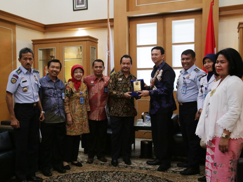 Gubernur DKI Jakarta, Basuki Tjahaja Purnama menerima Kepala Kantor Wilayah Kemenkum HAM DKI Jakarta, Dahlan Pasaribu beserta jajaranya, di Balai Kota DKI Jakarta, Kamis (12/05). Turut hadir dalam pertemuan ini Kepala Biro Hukum DKI Jakarta, Yayan Yuhana. (Foto: Yopie/beritajakarta)