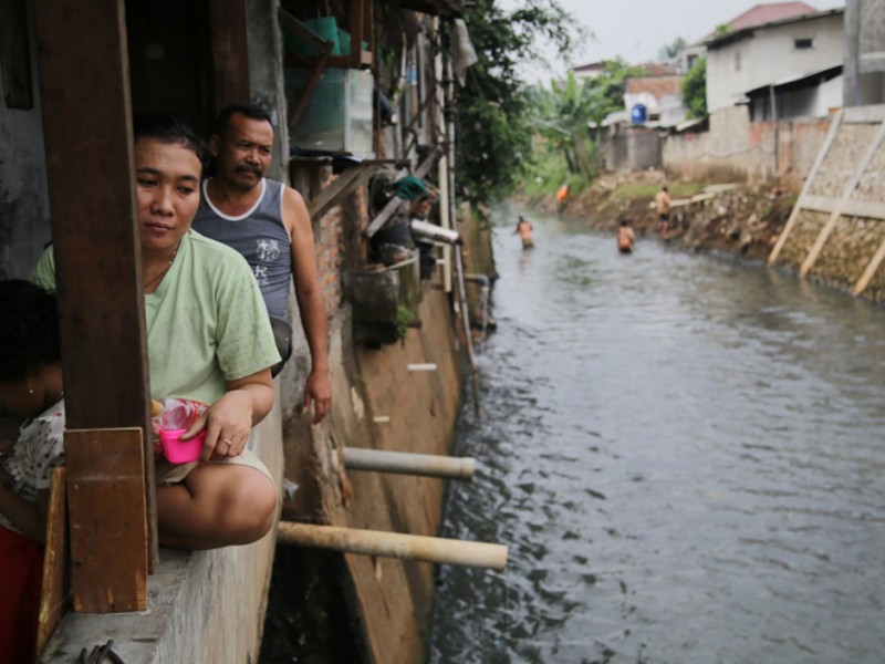 Warga yang tinggal disepanjang Kali Mampang menikmati bersihnya kali