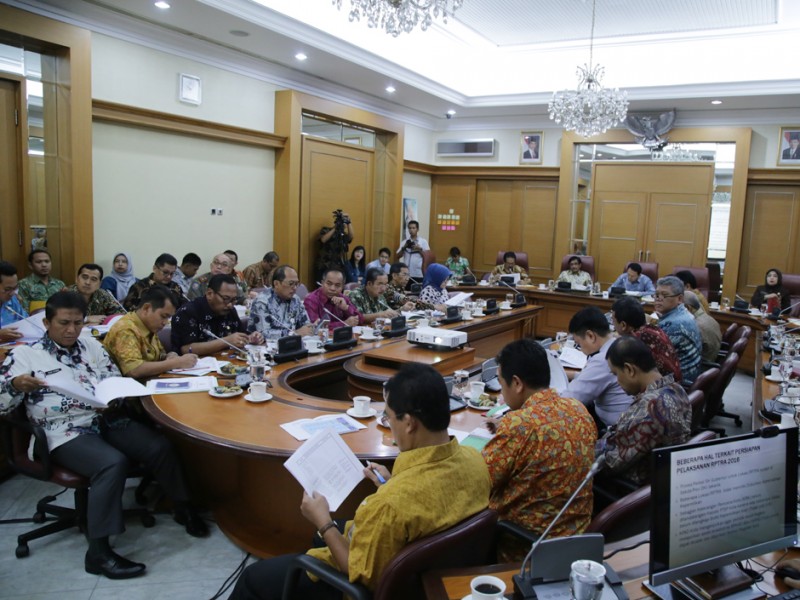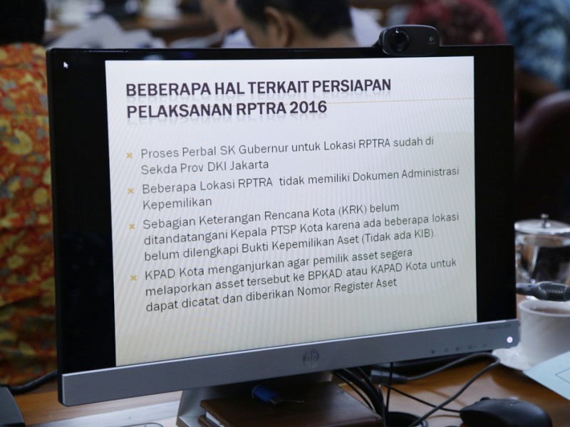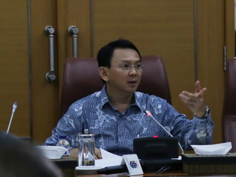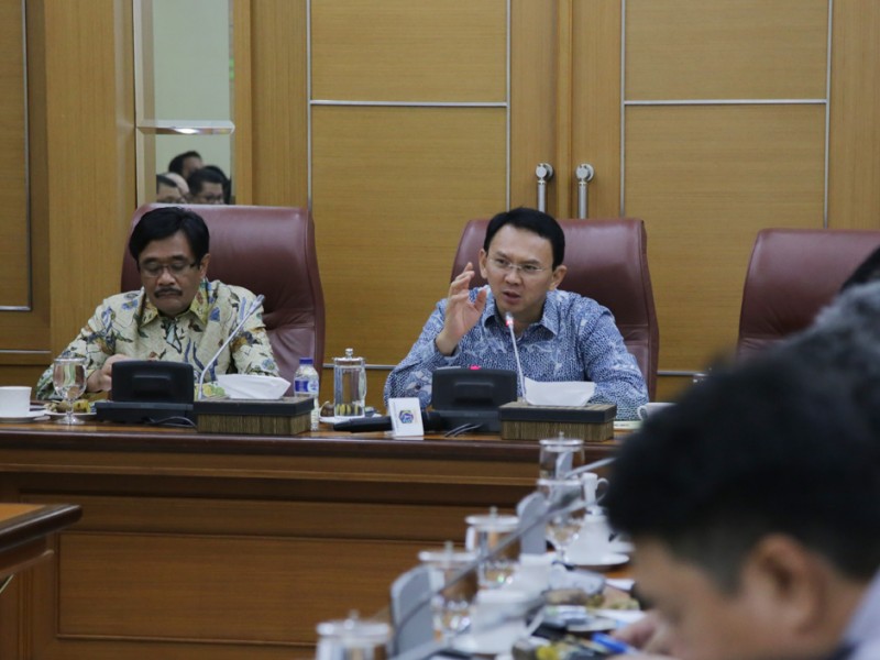 Gubernur DKI Jakarta, Basuki Tjahaja Purnama memimpin rapat bersama jajaran Satuan Kerja Perangkat Daerah (SKPD) di Balai Kota DKI Jakarta, Senin (16/05). Beberapa pembahasan dalam rapat kali ini yakni mendengarkan paparan Kepala Dinas Perumahan dan Gedung DKI Jakarta, Ika Lestari Aji mengenai update pelaksanaan RPTRA tahap 3 (APBD 2016) serta paparan dari Kepala Dinas Perhubungan dan Transportasi DKI Jakarta, Andri Yansyah mengenai tindak lanjut pengaduan masyarakat terkait dinas perhubungan. (Foto: Yopie/beritajakarta.com)