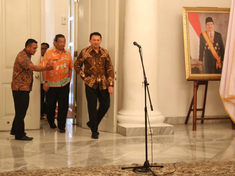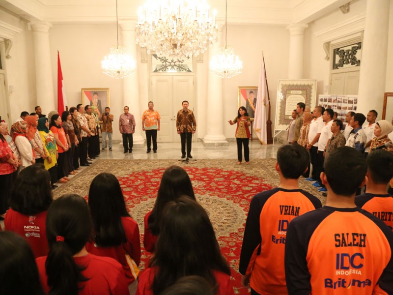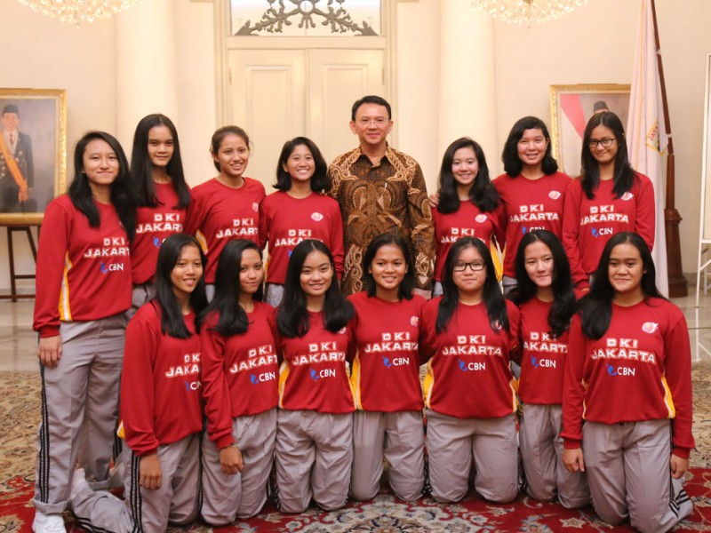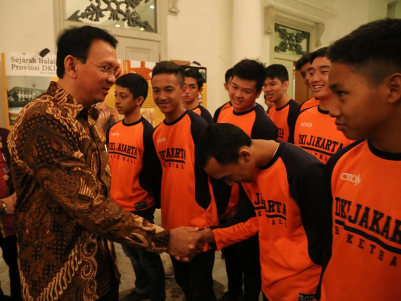 Gubernur DKI Jakarta, Basuki Tjahaja Purnama melepas 30 pemain Tim Basket DKI Jakarta di Balai Kota DKI Jakarta, Rabu (18/5). Tim Basket DKI akan mengikuti Kejuaraan Nasional (KEJURNAS) Usia 16 Tahun di Yogyakarta.(Foto: Reza/beritajakarta.com)