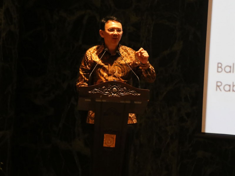 Gubernur DKI Jakarta, Basuki Tjahaja Purnama Lokakarya “Grand Design Green Building” di Balai Kota DKI Jakarta Rabu (18/05). Dalam penutupan ini dilaporkan hasil diskusi oleh Kepala Dinas Penataan Kota, Iswan Achmadi.(Foto: Reza/beritajakarta.com)