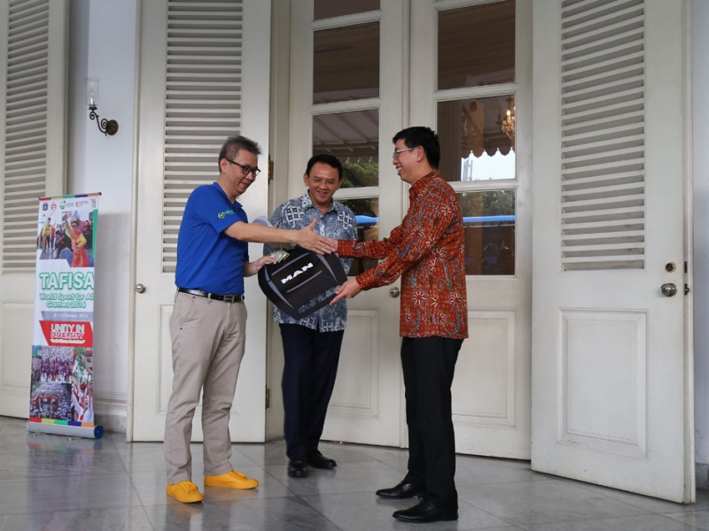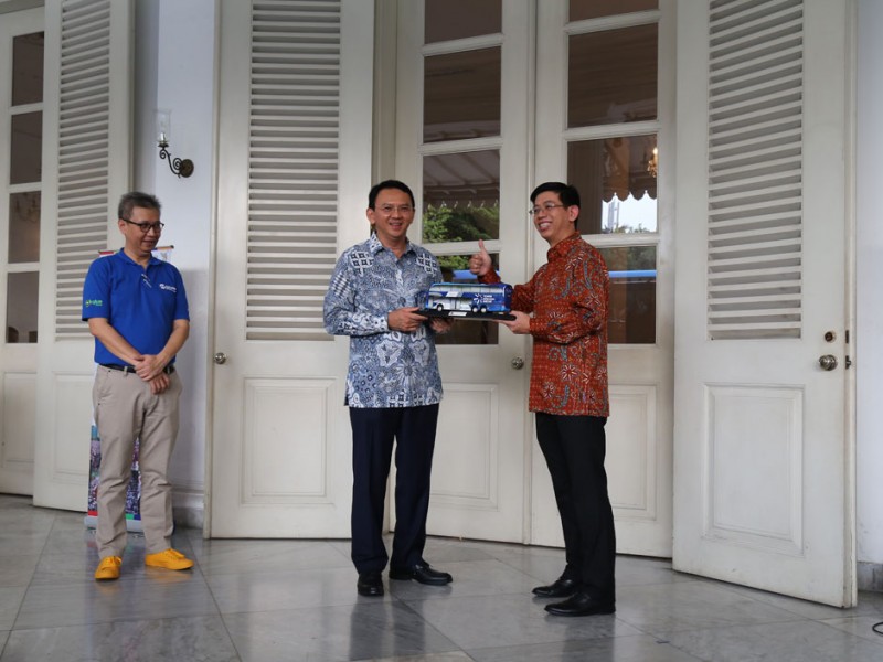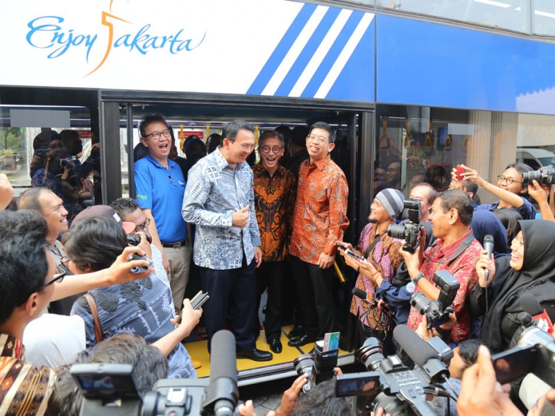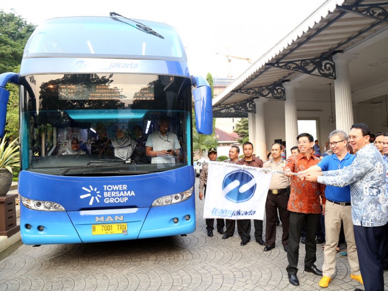 Pemerintah Provinsi DKI Jakarta menerima hibah satu unit bus tingkat wisata dari PT Tower Bersama Infrastructure Tbk di Balai Kota DKI Jakarta, Jumat (20/05).(Foto: Reza/beritajakarta.com)