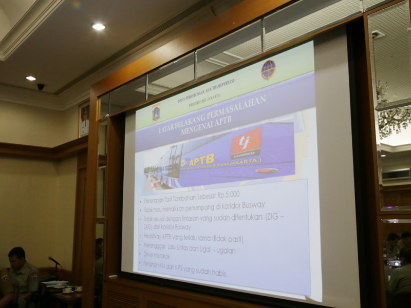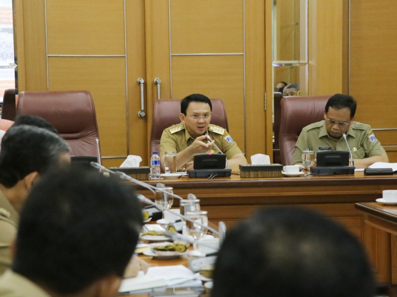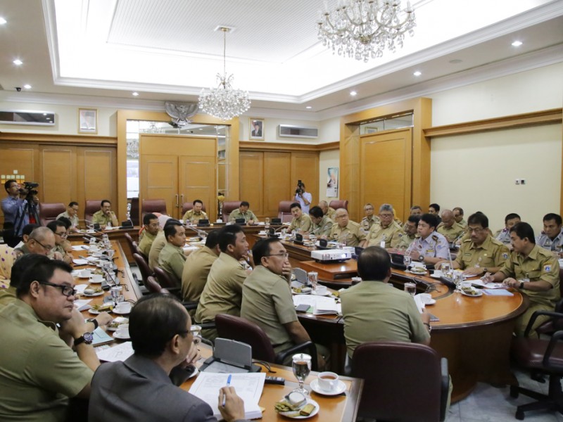 Gubernur DKI Jakarta, Basuki Tjahaja Purnama memimpin rapat bersama jajaran Satuan Kerja Perangkat Daerah (SKPD) di Balai Kota DKI Jakarta, Senin (23/5/). Sejumlah topik dibahas dalam Rapim tersebut diantaranya pengaduan masyarakat mengenai Bus APTB dan pungutan liar saat Uji KIR. (Foto: Yopie/Beritajakarta.com)