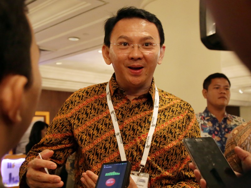 Gubernur DKI Jakarta, Basuki Tjahaja Purnama memaparkan program pembangunan infrastruktur DKI Jakarta dalam seminar Infrastructure Finance Conference 2016 di Grand Ballroom, Hotel Grand Hyatt, Jalan MH Thamrin, Jakarta Pusat, Rabu (25/05/2016). (Foto: Yudi/Humas & Yopie/Beritajakarta.com)