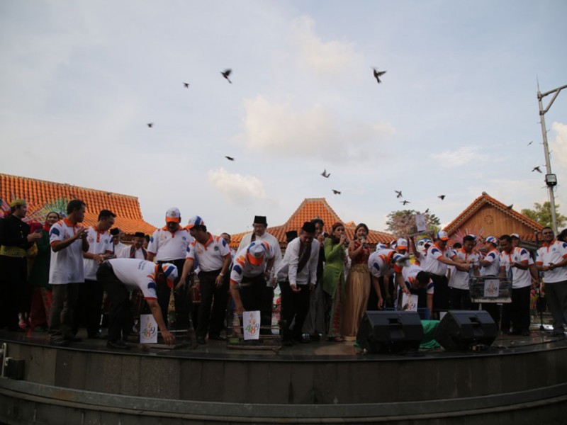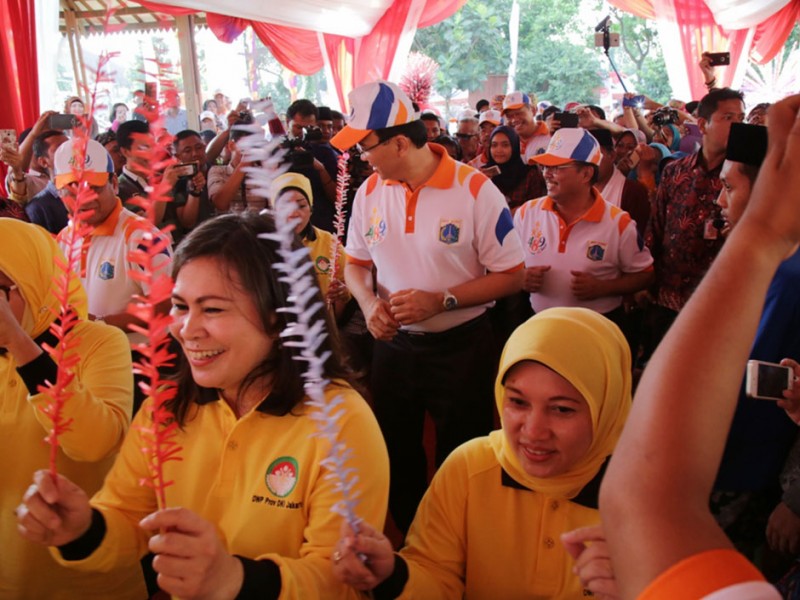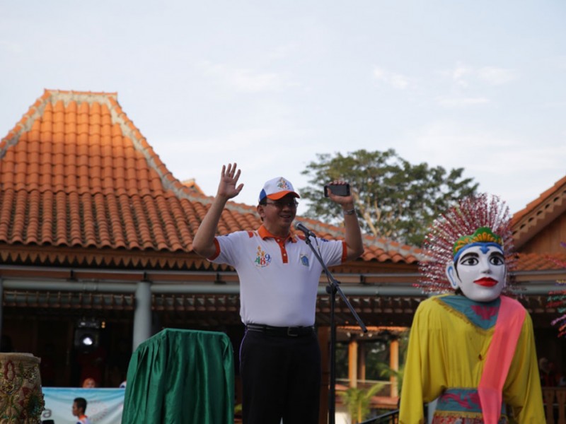 Gubernur DKI Jakarta, Basuki Tjahaja Purnama melakukan pencanangan HUT ke-489 DKI Jakarta di Perkampungan Budaya Betawi Setu Babakan, Kelurahan Srengseng Sawah, Kecamatan Jagakarsa, Jakarta Selatan, Sabtu (28/5/2016). Dalam kesempatan yang sama Basuki juga mengukuhkan anggota Forum Pengkajian Perkampungan Budaya Betawi periode 2016-2020.(Foto: Yopie/Beritajakarta.com)