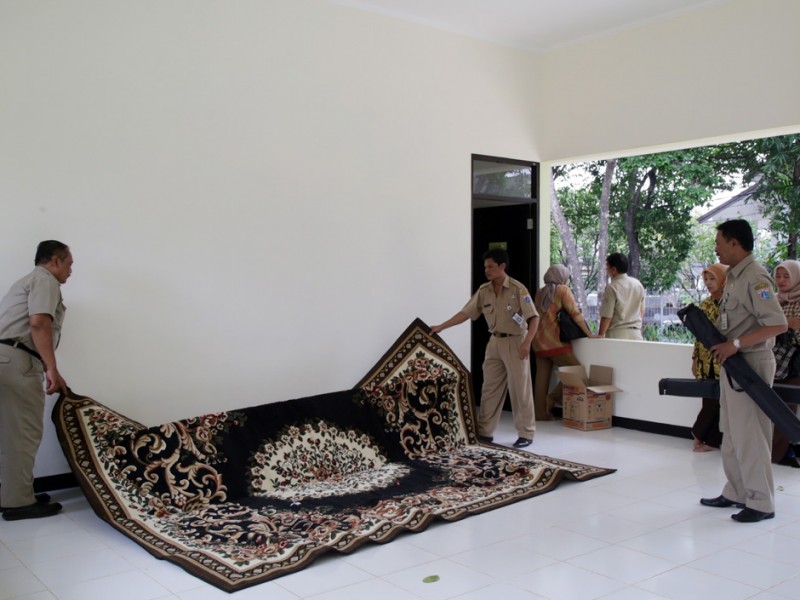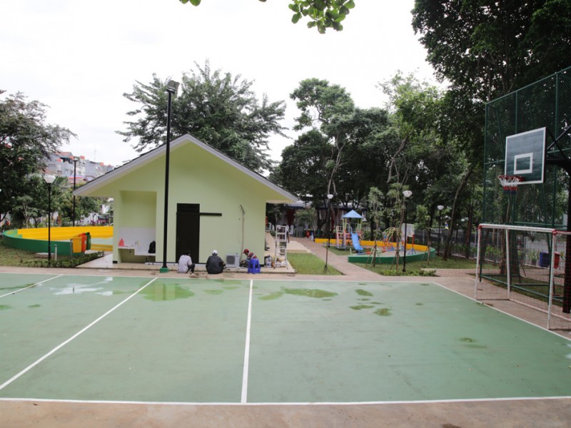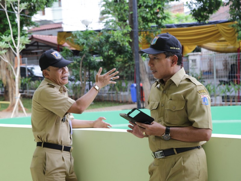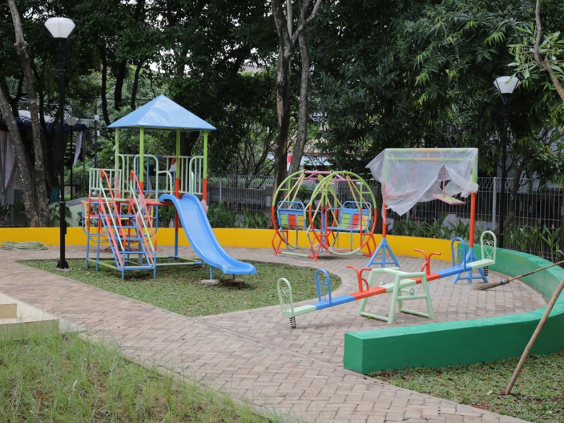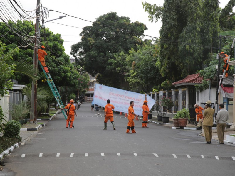 Puluhan PPSU Kelurahan Cipete Utara melakukan berbagai persiapan jelang peresmian Ruang Publik Terpadu Ramah Anak (RPTRA) Taman Sawo di Jalan Taman Villa Sawo RT 007/02, Kelurahan Cipete Utara, Kecamatan Kebayoran Baru, Jakarta Selatan. Senin (30/5). RPTRA akan diresmikan Selasa (31/5/) besok oleh Gubernur DKI Jakarta, Basuki Tjahaja Purnama. (Foto: Yopie/Beritajakarta.com)