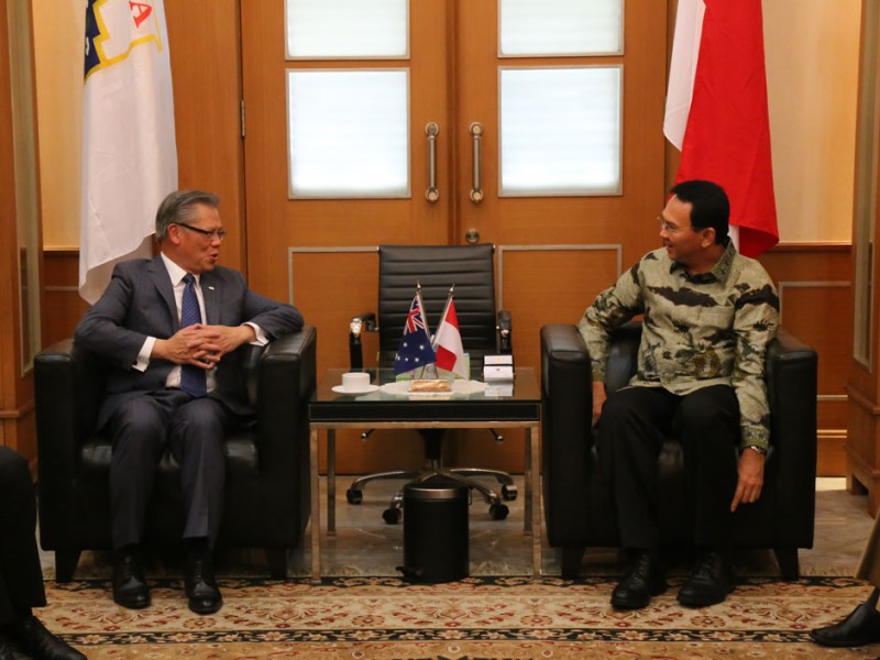 Gubernur DKI Jakarta, Basuki Tjahaja Purnama menerima Gubernur Australia Selatan, Mr. Hieu Ban Le di Balai Kota DKI Jakarta, Senin (30/05). Pertemuan ini membahas penjajakan potensi kerjasama dalam perdagangan dan investasi.(Foto: Reza/Beritajakarta.c om)