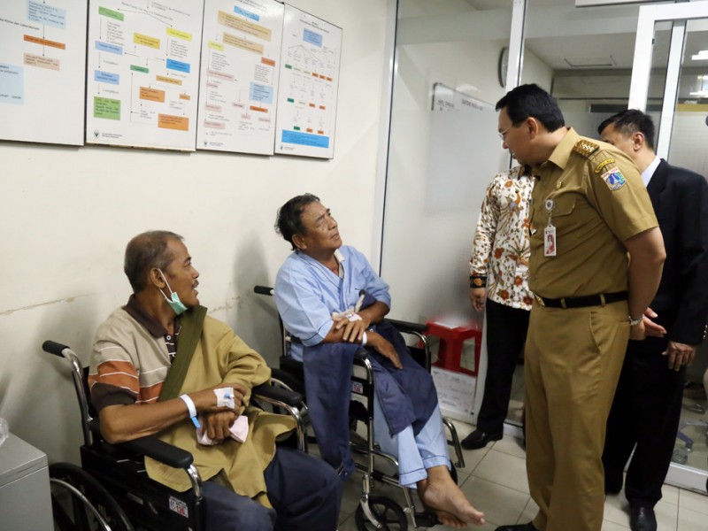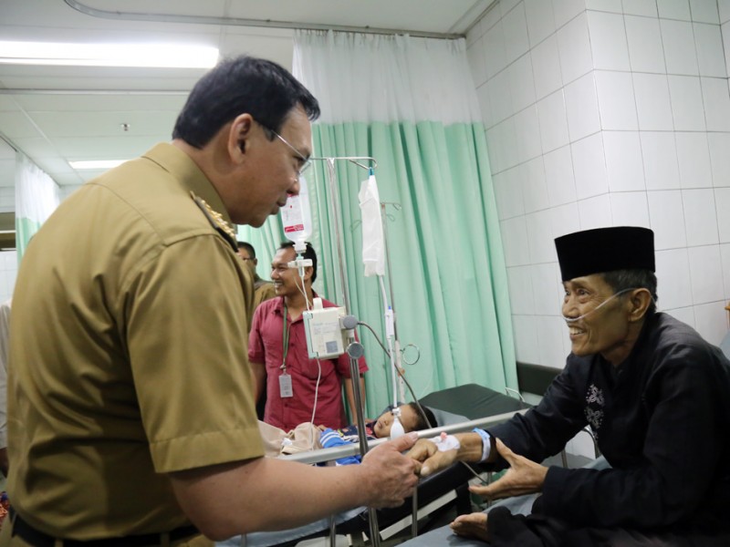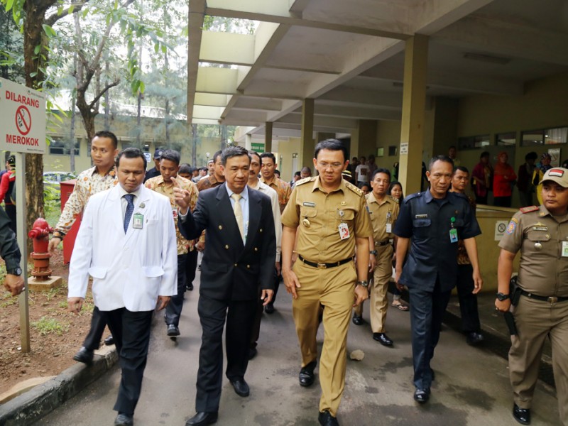 Gubernur DKI Jakarta, Basuki Tjahaja Purnama menghadiri acara HUT RSUD Cengkareng Ke-13 di Ruang Aula Gambang Kromong, Lt. 7 RSUD Cengkareng, Jakarta Barat, Senin (31/5). Sebelum ketempat acara perayaan ulang tahun Basuki mengecek sejumlah pasien di ruang rawat inap dan Instalasi Gawat Darurat (IGD). (Foto: Reza/beritajakarta.com)