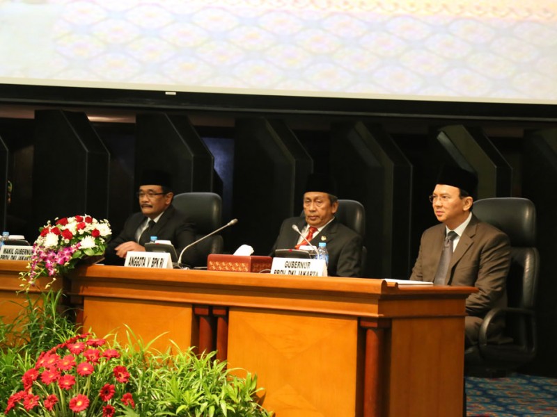 Gubernur DKI Jakarta, Basuki Tjahaja Purnama dan Wakil Gubernur DKI Jakarta, Djarot Saiful Hidayat menghadiri Rapat Paripurna Istimewa di Gedung DPRD DKI Jakarta, Jalan Kebon Sirih, Jakarta Pusat, Rabu (01/6). Paripurna ini beragendakan Penyerahan LHP BPK RI atas LKPD Provinsi DKI Jakarta Tahun Anggaran 2015 . (Foto: Reza/Beritajakarta.com)