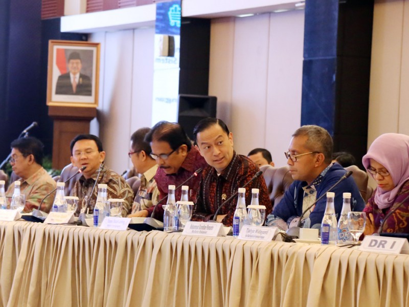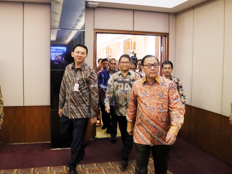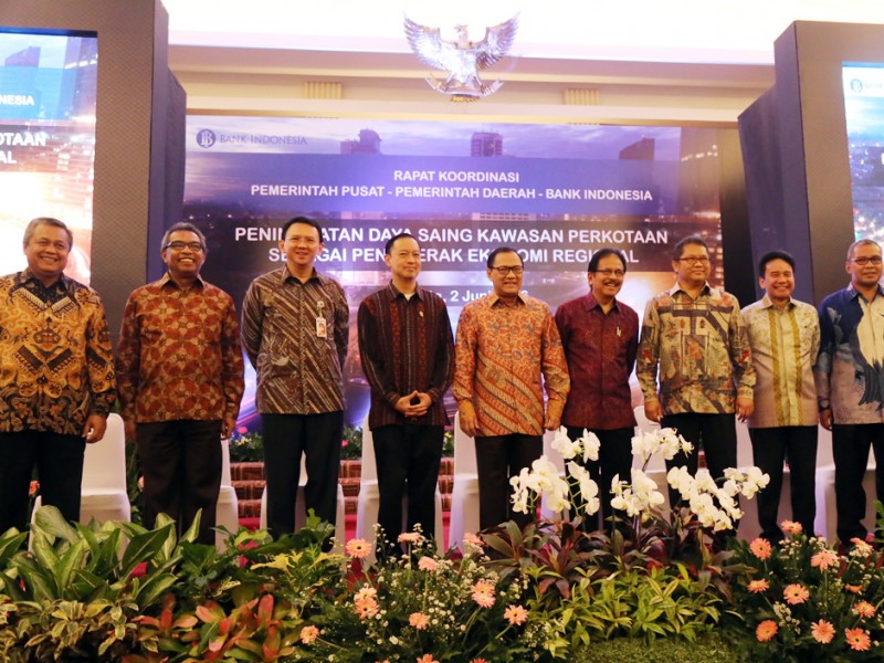 Gubernur DKI Jakarta, Basuki Tjahaja Purnama menghadiri Rapat Evaluasi Ekonomi dan Keuangan Daerah (REKDA) bersama Gubernur Bank Indonesia, Agus Martowardojo di Perkantoran Bank Indonesia, Jl MH Thamrin, Tanah Abang, Jakarta Pusat, Kamis (02/06). Hadir dalam rapat ini Kepala Bappenas, Sofyan Djalil, Menteri Komunikasi dan informatika (Menkominfo) RI, Rudi Antara, Menteri Perdagangan RI Thomas Trikasih Lembong, Walikota Makassar, Mohammad Ramdhan Pomanto dan jajaran deputi Bank Indonesia.(Foto: Reza/Beritajakarta.com)