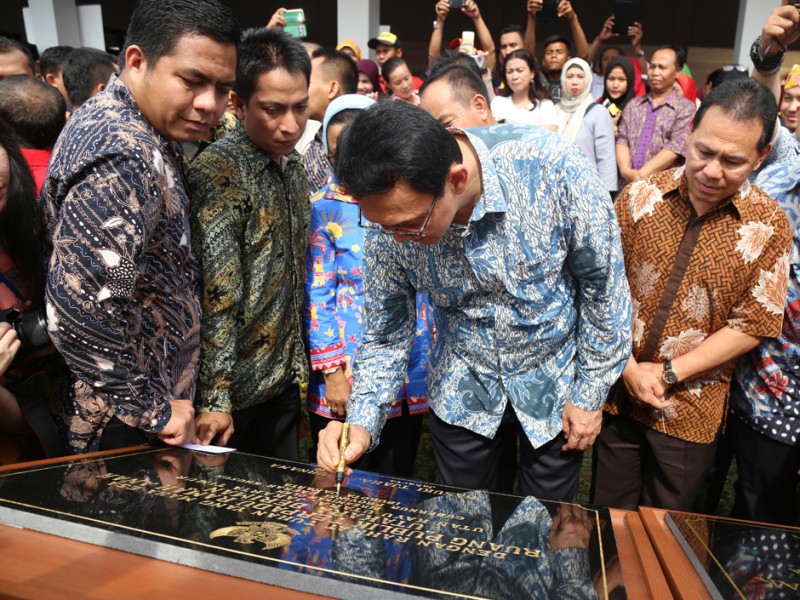 Gubernur DKI Jakarta, Basuki Tjahaja Purnama meresmikan Ruang Publik Terpadu Ramah Anak (RPTRA) Utan Kayu Utara Beriman (Utakara) di Kelurahan Utan Kayu Utara, Kecamatan, Matraman, Jakarta Timur, Jumat (03/6). RPTRA ini dibangun oleh CSR salah satu perusahaan makanan di atas lahan seluas sekitar 2.300 meter persegi, dan dibangun sejak Maret lalu. (Foto: Reza/Beritajakarta.com)