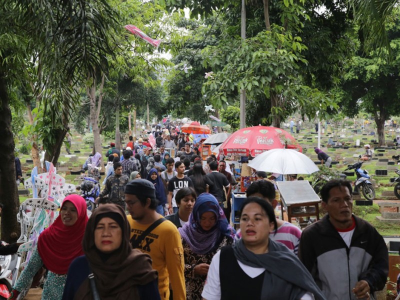 Menjadi kebiasaan sebagian besar umat Islam di Jakarta untuk melakukan ziarah jelang Ramadan. Alhasil, sejumlah Taman Pemakaman Umum (TPU), Minggu (5/6/2016), ramai dipadati peziarah. Hal ini sebagaimana terjadi di TPU Karet Bivak, Jakarta Pusat dan TPU Tanah Kusir, Jakarta Selatan. Selain memanjatkan doa para peziarah yang datang juga melakukan tabur bunga. Alhasil, ramainya peziarah yang datang membawa berkah tersendiri bagi penjual bunga. (Foto: Yopie/Beritajakarta.com)