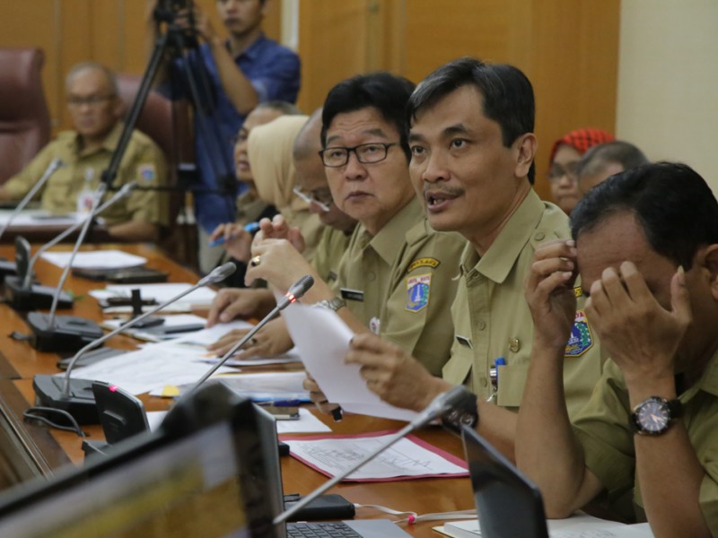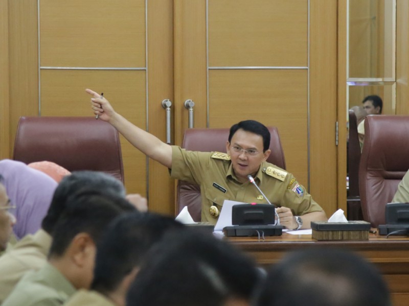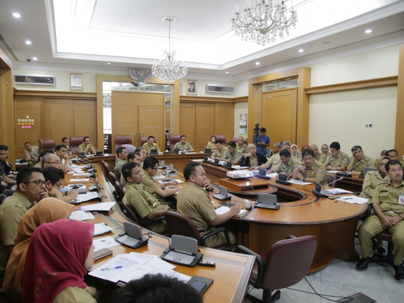 Gubernur DKI Jakarta, Basuki Tjahaja Purnama membahas honorarium dan Tunjangan Hari Raya (THR) bagi Pekerja Harian Lepas (PHL) dan PPSU dalam Rapim di Balai Kota DKI Jakarta, Senin (6/6). Selain itu Rapim juga membahas progres pengembangan Sistem Informasi Manajemen Kepegawaian (SIMPEG). (Foto: Yopie/beritajakarta.com)