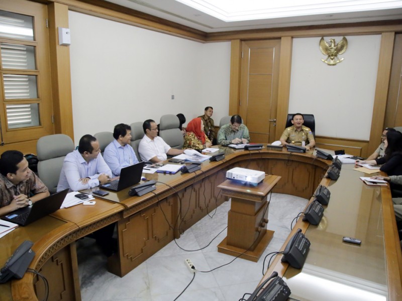 Direksi PD Pasar Jaya memberikan laporan terkait operasi pasar kepada Gubernur DKI jakarta, Basuki Tjahaja Purnama di Balai Kota Jakarta, Selasa (7/6). (Foto: Yopie/beritajakarta.com)