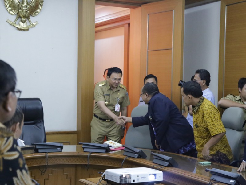 Dewan Transportasi Kota Jakarta (DTKJ) menemui Gubernur DKI Jakarta, Basuki Tjahaja Purnama menyampaikan rekomendasi atas permasalahan transportasi di DKI Jakarta, Balai Kota Jakarta, Selasa (7/6). Turut hadir dalam pertemuan Sekretaris Dinas Perhubungan dan Transportasi DKI Jakarta, Sigit Wijatmoko. (Foto: Yopie/beritajakarta.com)