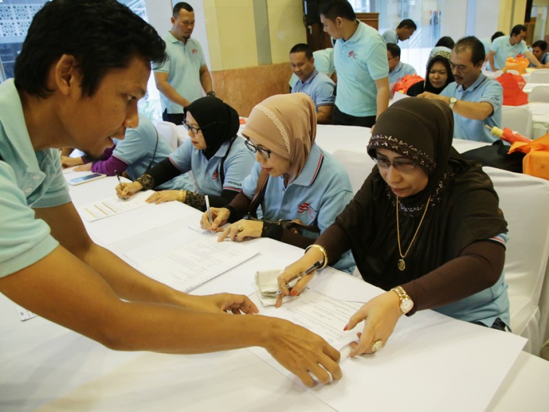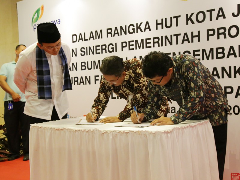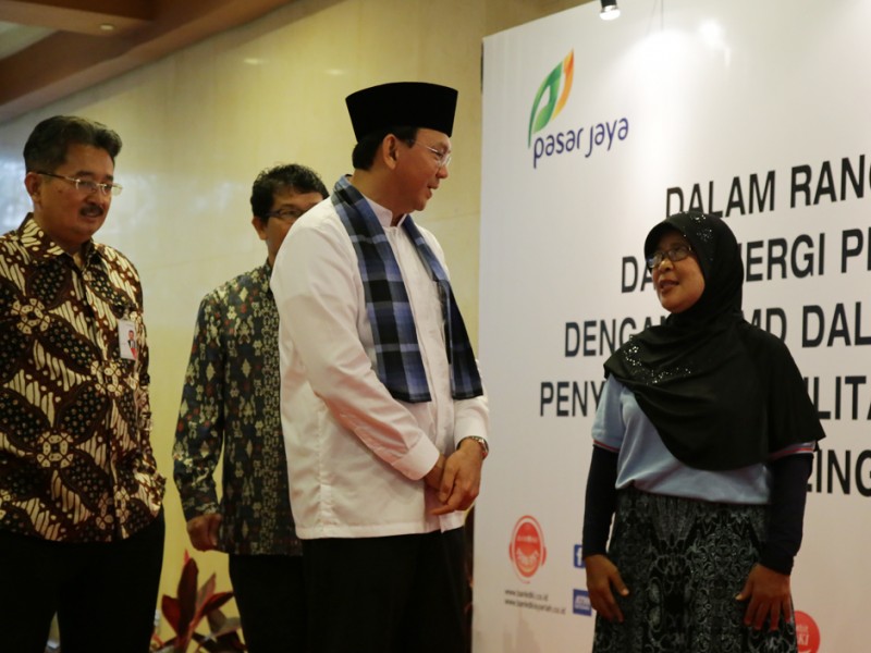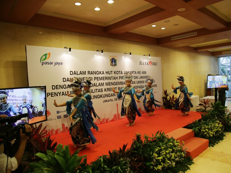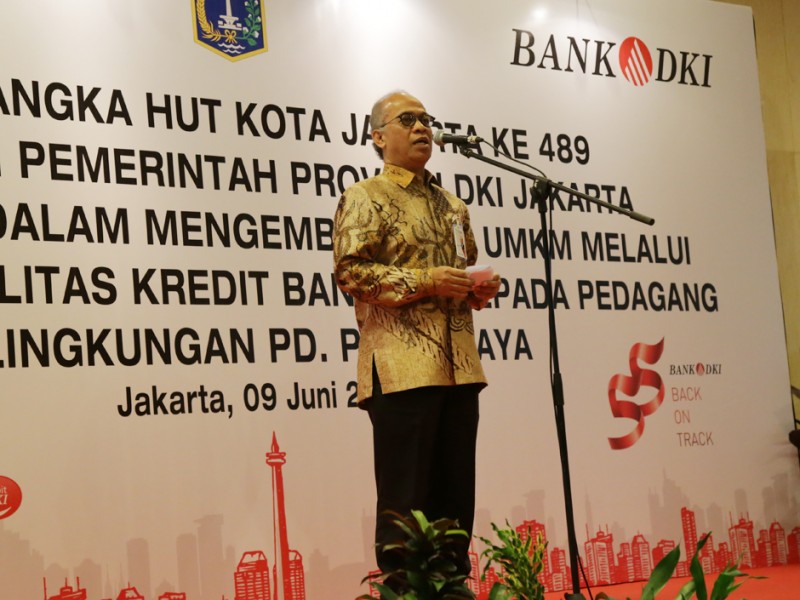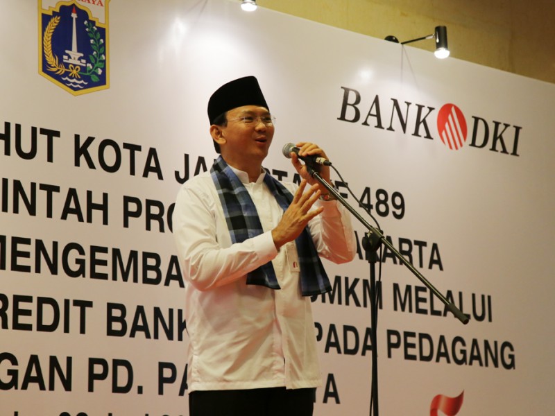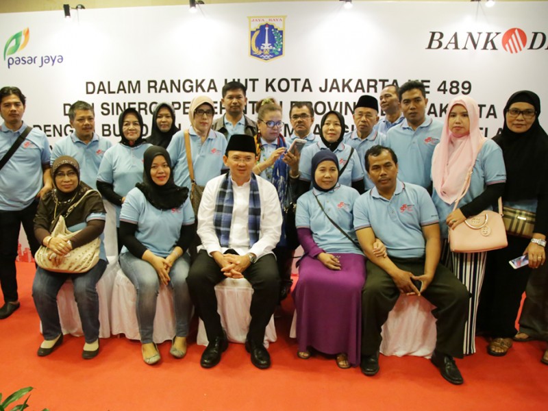 Bank DKI bersama PD Pasar Jaya menyalurkan kredit kepada 489 debitur yang merupakan pedagang Usaha Mikro Kecil Menengah (UMKM) di Balai Kota DKI Jakarta Kamis (09/06). Penyaluran kredit ini disaksikan langsung Gubernur DKI Jakarta, Basuki Tjahaja Purnama. (Foto: Yopie/beritajakarta.com)