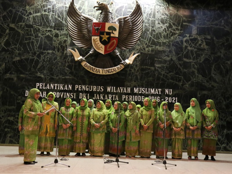 Wakil Gubernur DKI Jakarta, Djarot Saiful Hidayat menghadiri pelantikan pengurus Muslimat Nahdatul Ulama (NU) Wilayah DKI Jakarta, di Balai Kota Jakarta, Jumat (10/6). (Foto: Reza/beritajakarta.com)