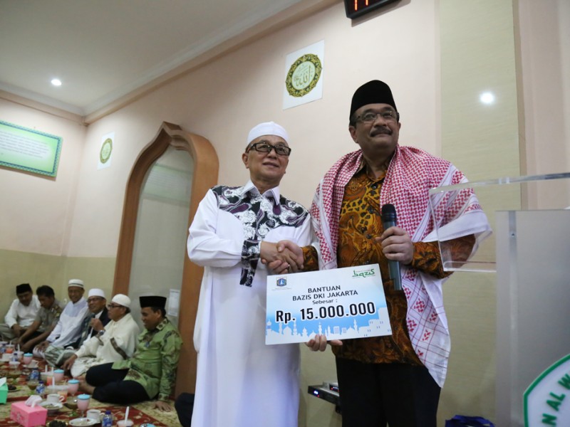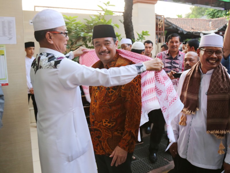 Wakil Gubernur DKI Jakarta, Djarot Saiful Hidayat melakukan safari Ramadan dengan berbuka puasa bersama dan shalat margrib berjamaah di Yayasan Al- Wathoniyah Asshodriyah 9, Jalan Raya Penggilingan No.99, Kecamatan Cakung, Jakarta Timur, Jumat (10/6). (Foto: Reza/beritajakarta.com)