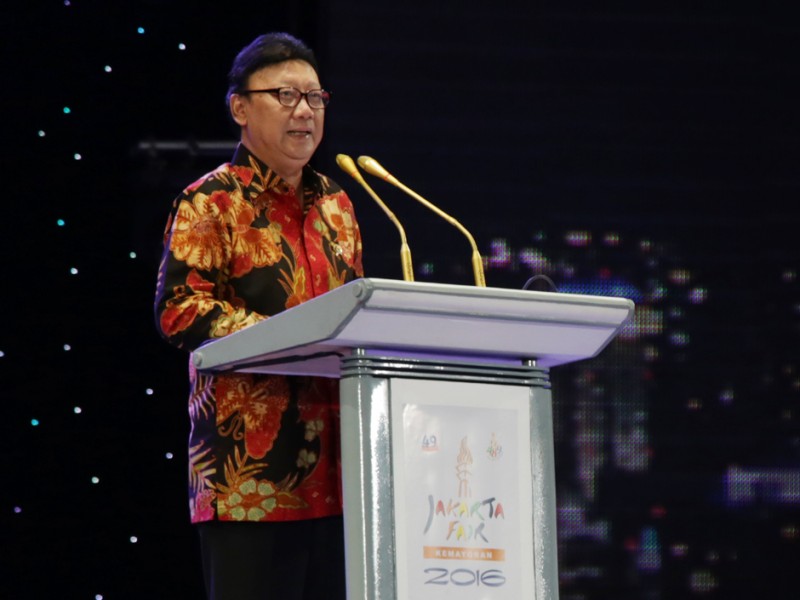 Menteri Dalam Negeri RI, Tjahjo Kumolo bersama Gubernur DKI Jakarta, Basuki Tjahaja Purnama meresmikan pagelaran tahunan Pekan Raya Jakarta (PRJ) atau Jakarta Fair ke-49 di JIExpo, Kemayoran, Jakarta Pusat. Jumat (10/6). Jakarta Fair ke-49 ini juga dalam rangka Ulang Tahun (HUT) Kota Jakarta ke-489. Turut hadir dalam acara ini Menteri Dalam Negeri RI, Tjahjo Kumolo. (Foto: Yopie/Beritajakarta.com)