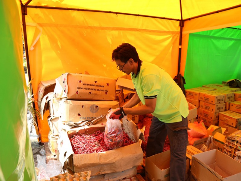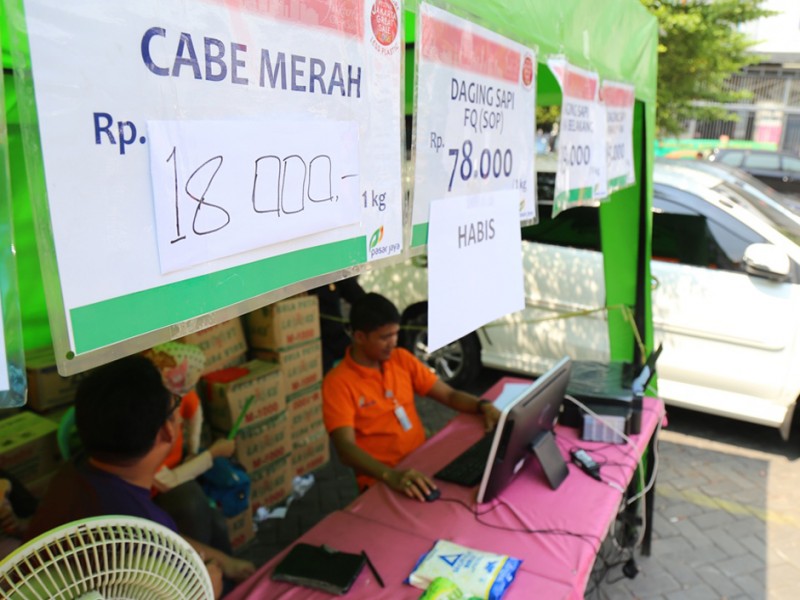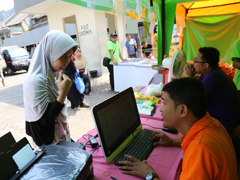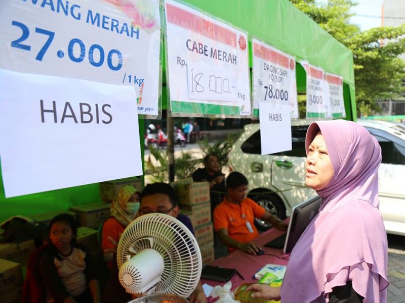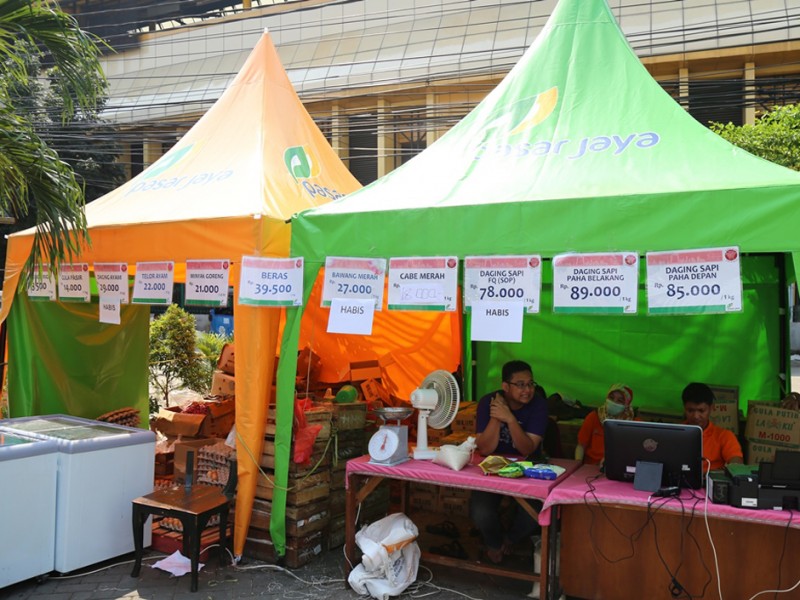 Operasi pasar di Pasar Gondangdia, Menteng, Jakarta Pusat, Senin (13/6/2016), disambut antusias warga. Tampak warga secara silih berganti mendatangi lokasi operasi pasar untuk memboyong berbagai kebutuhan yang dijual lebih murah dari harga yang biasa di jual di pasar. (Foto: Reza/Beritajakarta.com)