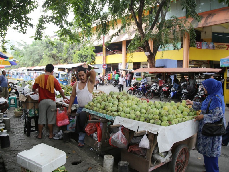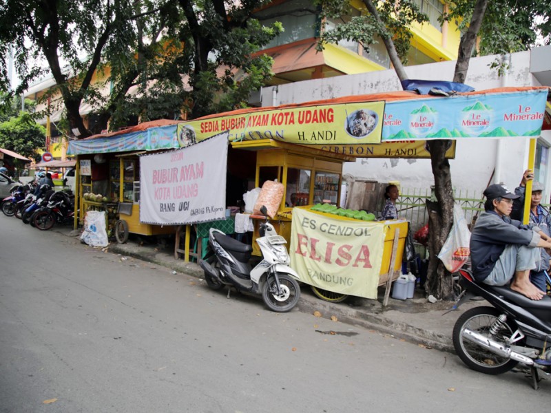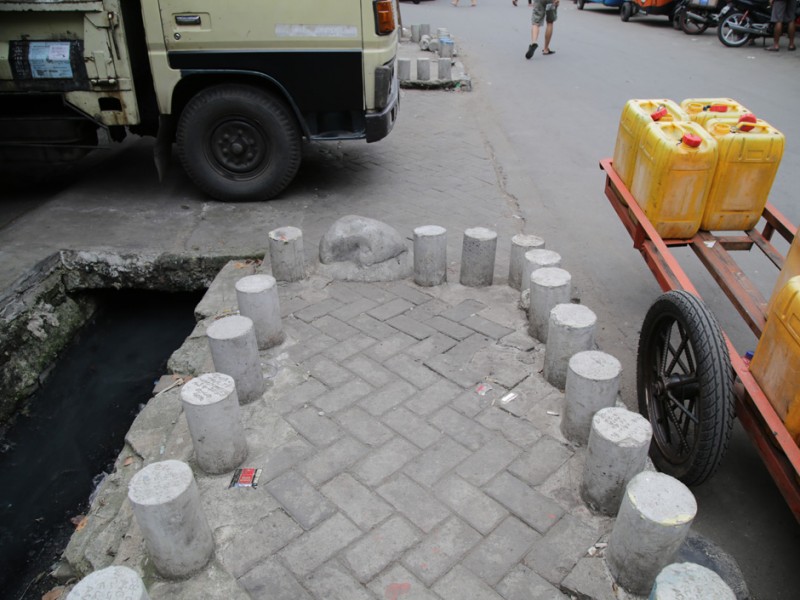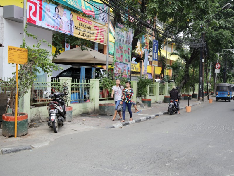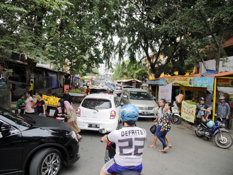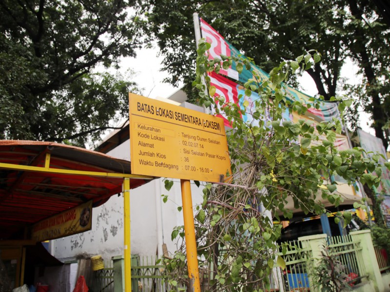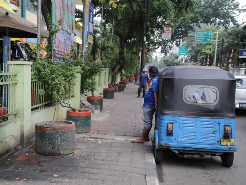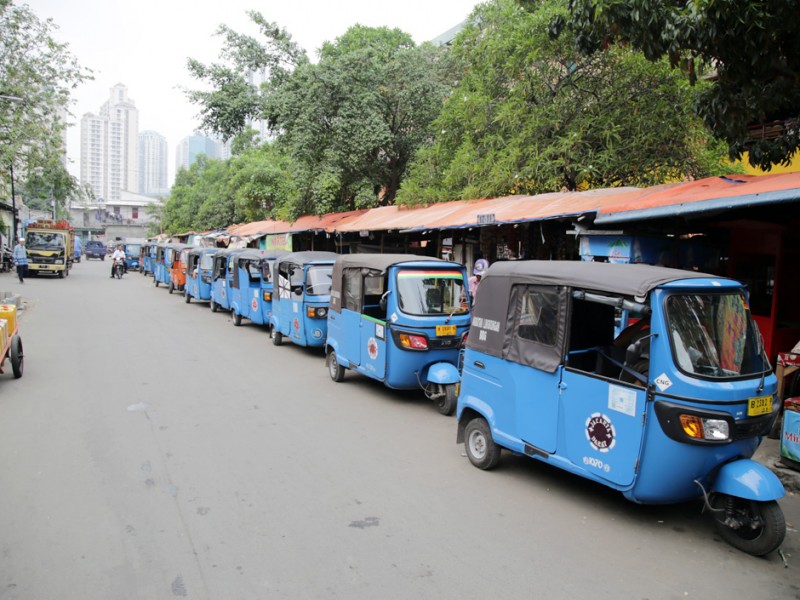Pang kalan Bajaj di Jalan Tanjung Duren Barat III, Jakarta Barat menggangu aktifitas pedagang Lokasi Sementara (Loksem) Pasar Tomang Barat, Jalan Tanjung Duren Barat III, Jakarta Barat, Rabu (15/6). (Foto: Yopie/beritajakarta.com)