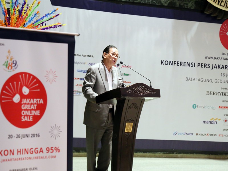 Deputi Gubernur Bidang Industri, Perdagangan dan Transportasi DKI Jakarta, Sutanto Soehodho membuka Jakarta Great Online Sale (JGOS) 2016 di Balai Kota DKI Jakarta, Kamis (16/6). (Reza/beritajakarta.com)